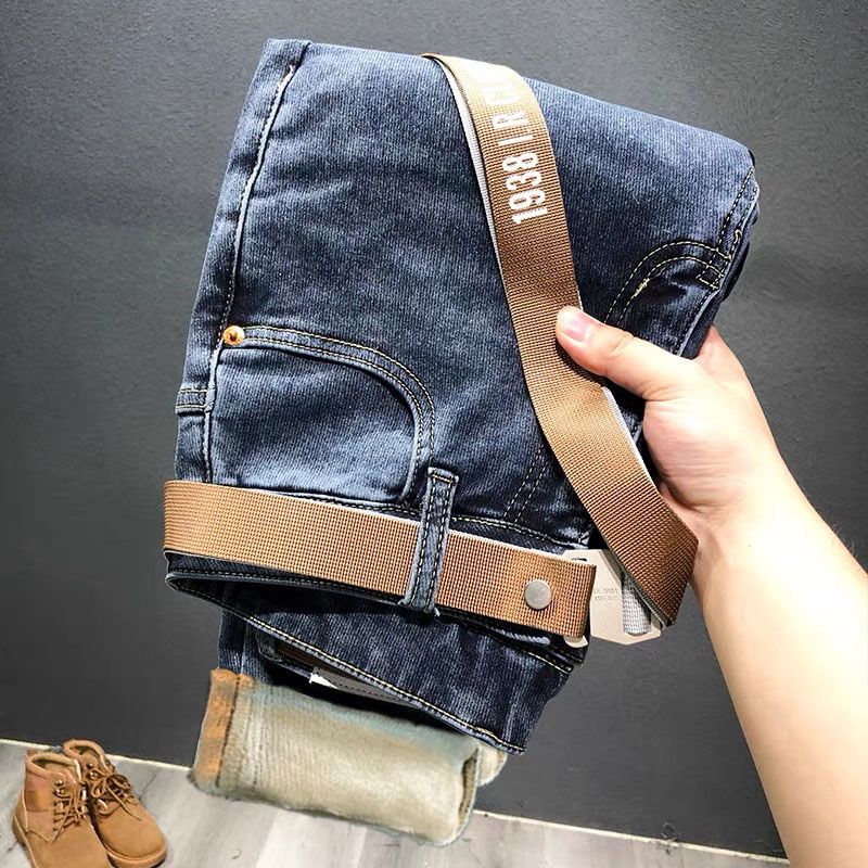 加绒牛仔裤青年裤子秋冬男生直筒休闲裤高街弹力男士高端微宽松