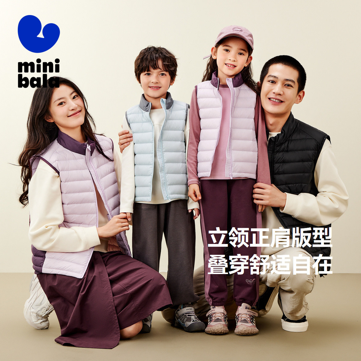迷你巴拉巴拉男女童保暖三防立领马甲外穿冬季新款宝宝儿童亲子装