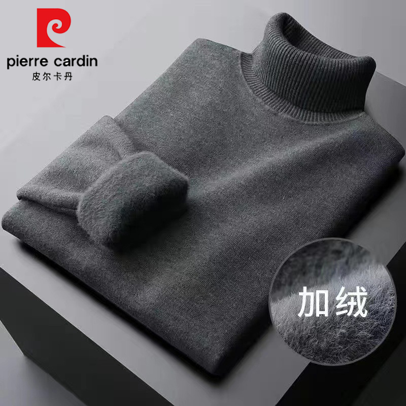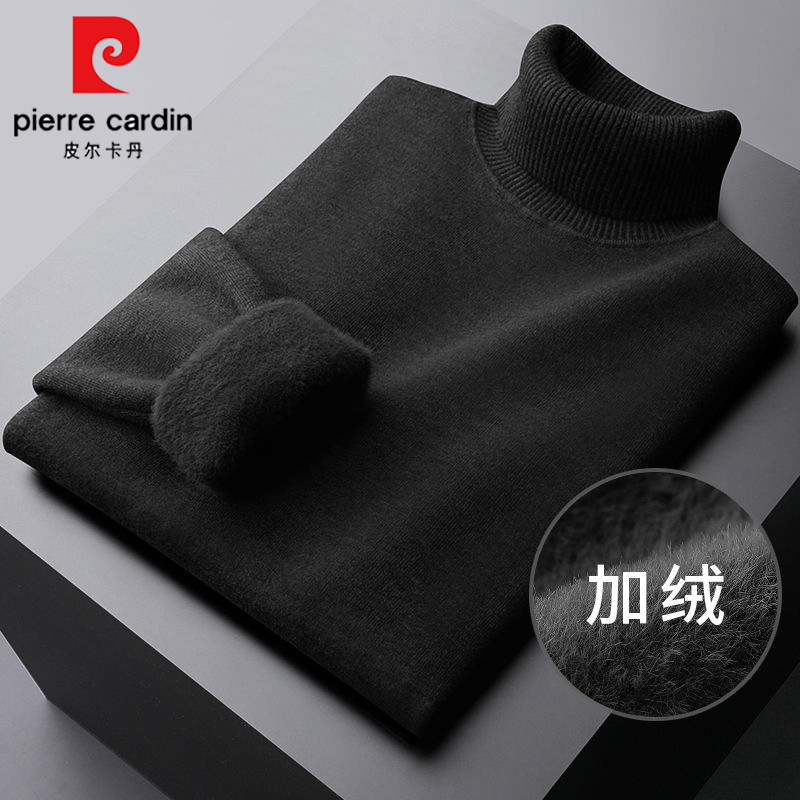 皮尔卡丹羊毛衫男士高领毛衣冬季加绒加厚保暖针织羊绒打底衫上衣