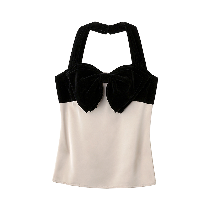 丝绒蝴蝶结缎面撞色吊带韩雨