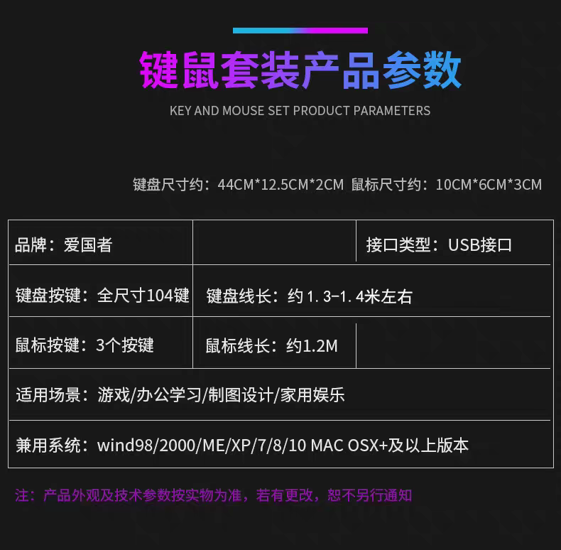 爱国者有线键盘鼠标粉色家用笔记本台式电脑办公发光套装外接女生