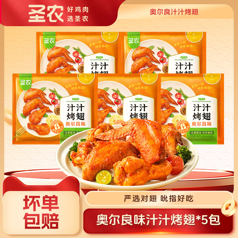 圣农汁汁烤翅奥尔良味鸡翅中300g烤翅免腌制冷冻半成品食材