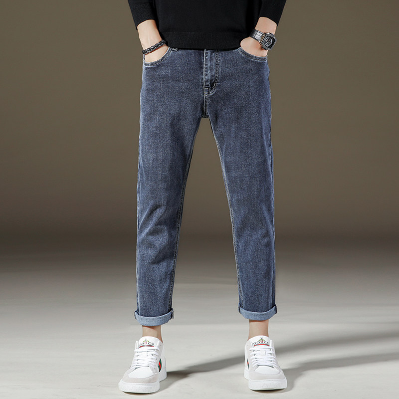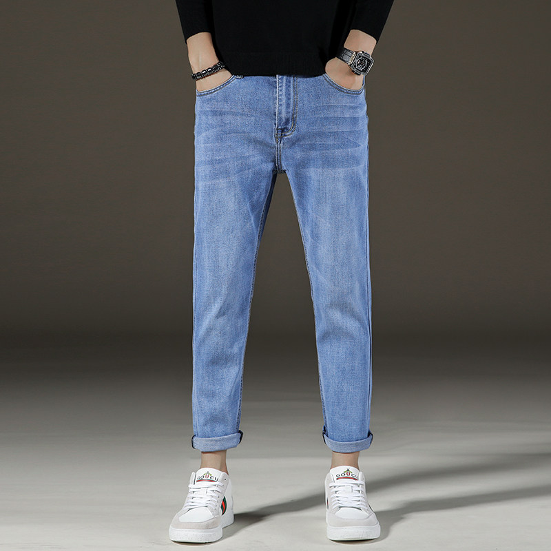 弹力小直筒九分牛仔裤男