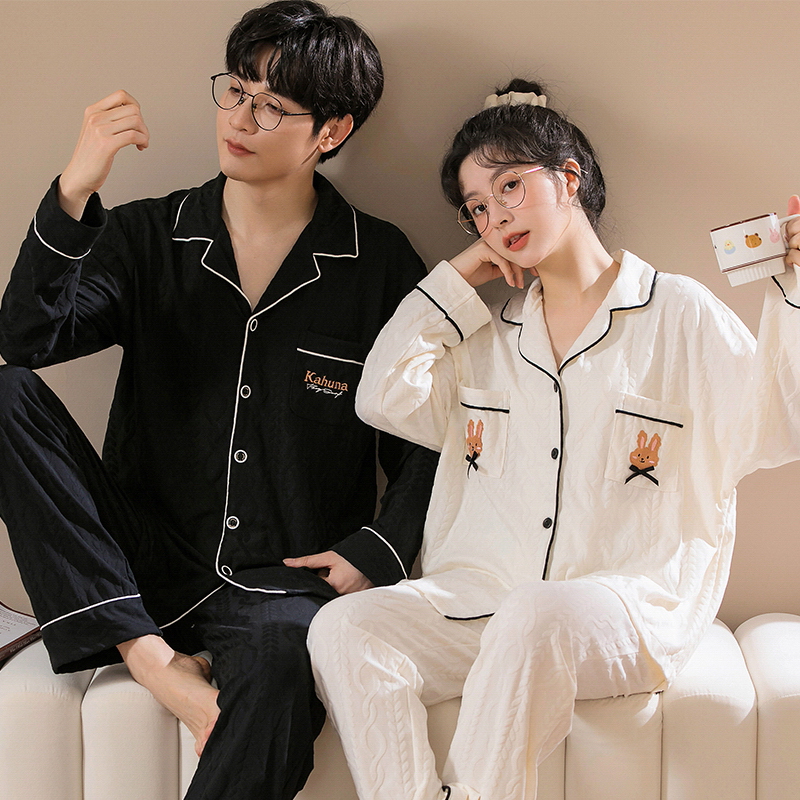 芬腾可2025年新款情侣睡衣春秋季纯棉秋款冬季少女男士长袖家居服