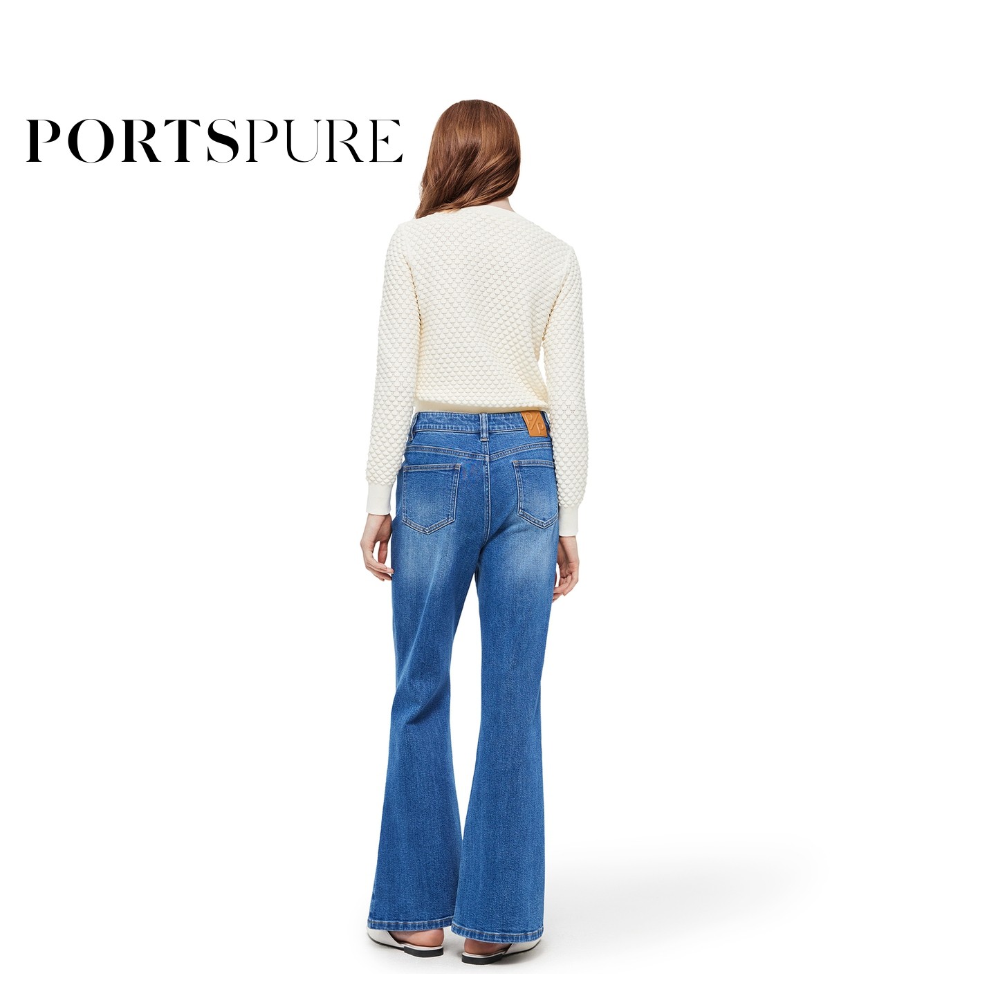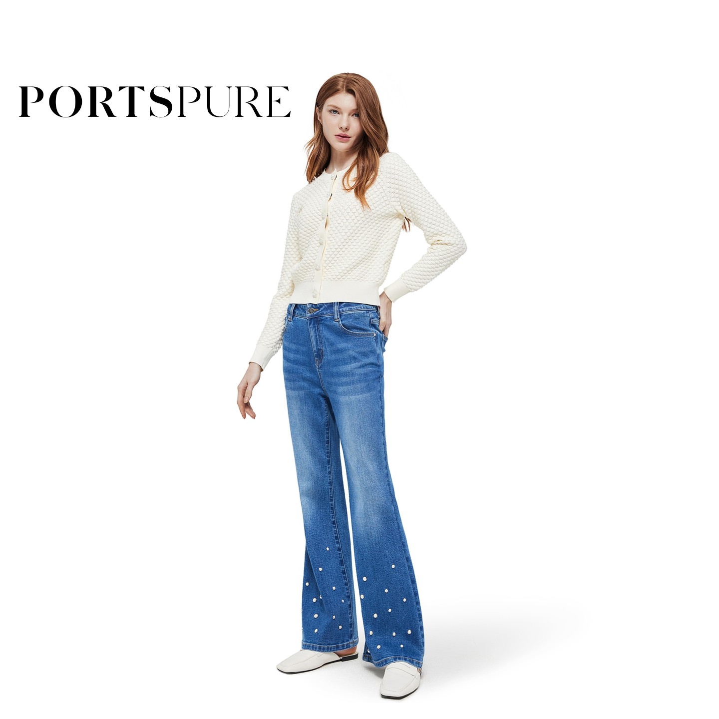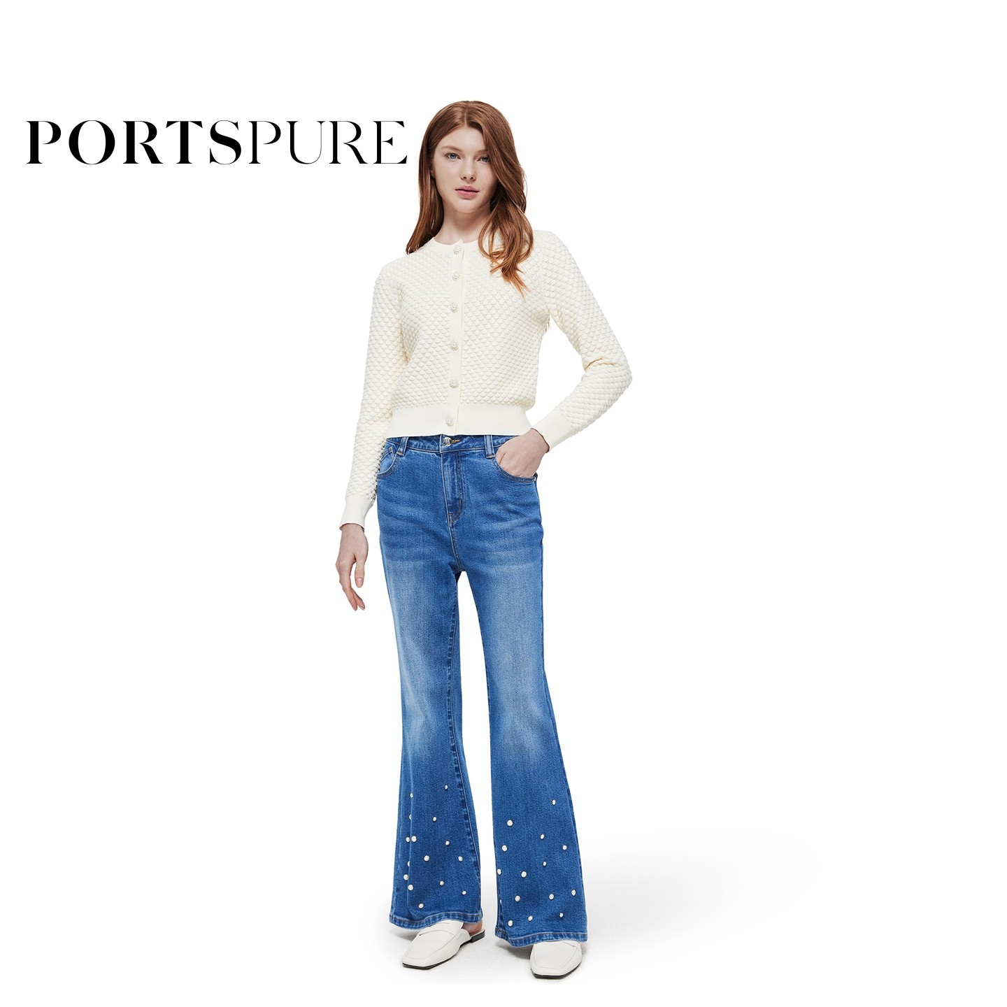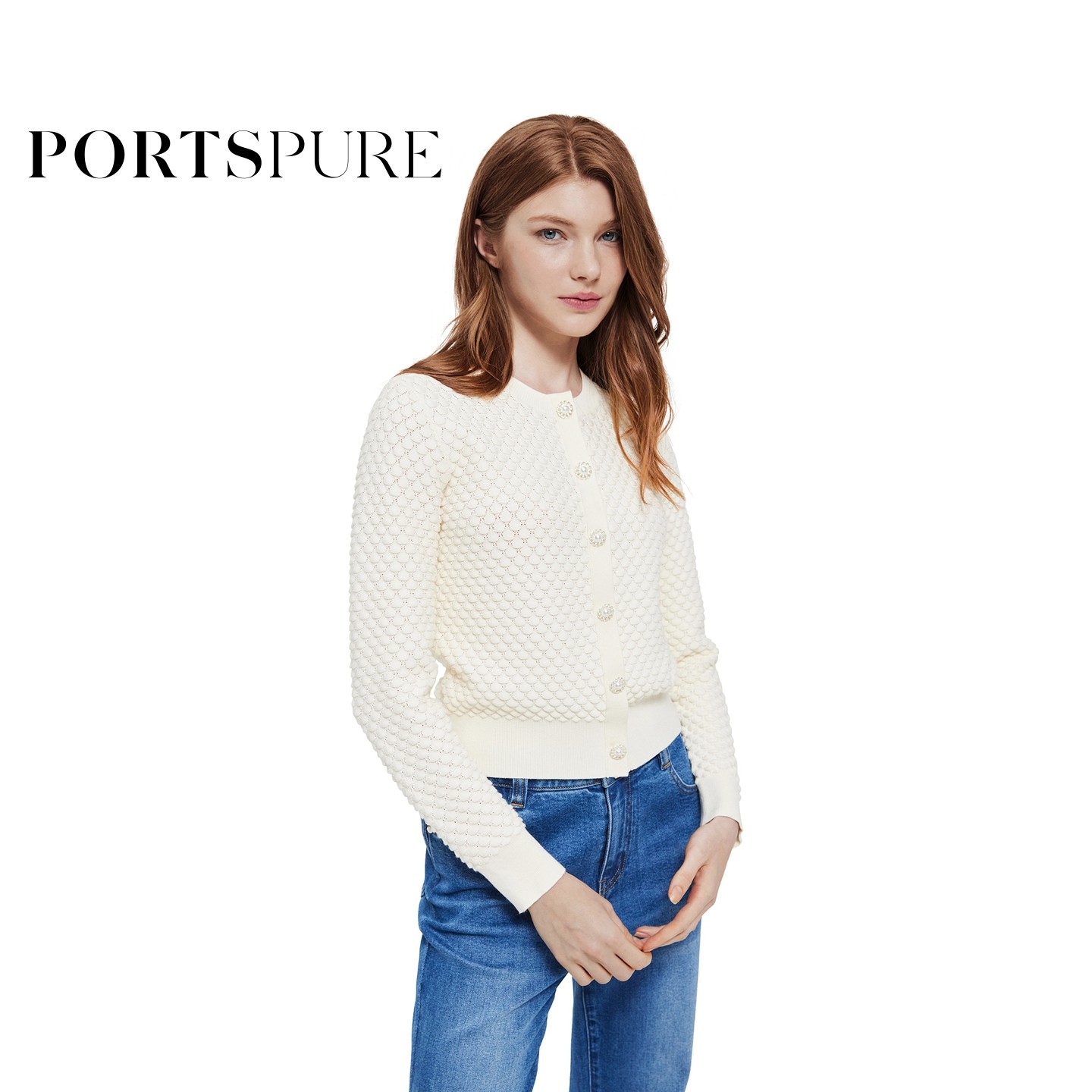 宝姿PORTSPURE女装冬季海浪肌理简约气质长袖毛针织开衫