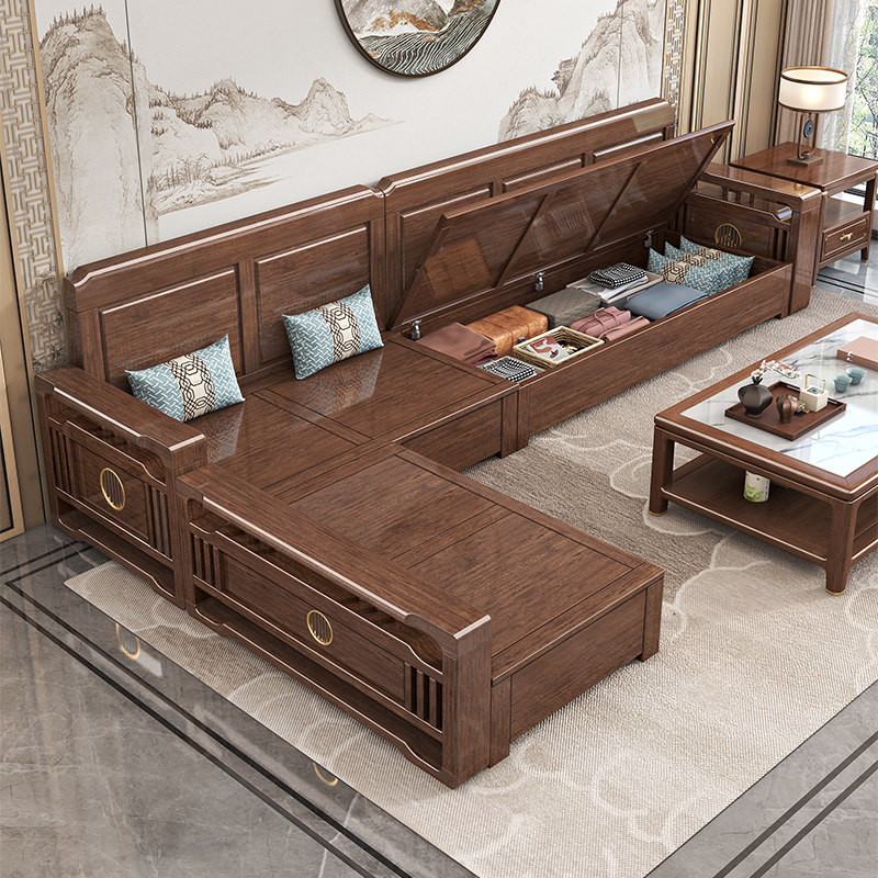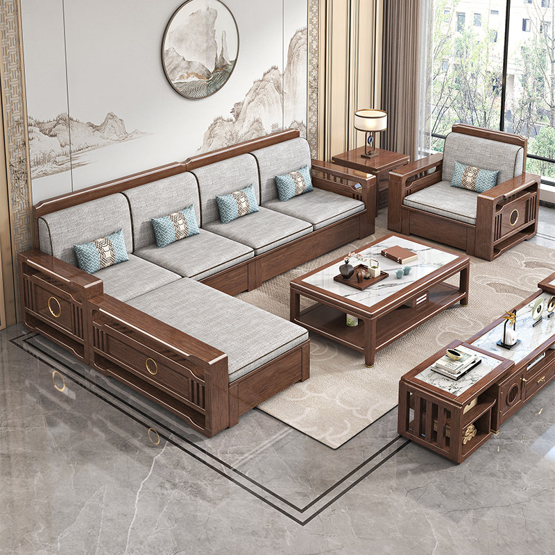 政府补贴实木沙发新中式胡桃木贵妃家用客厅中式高端家具木质沙发