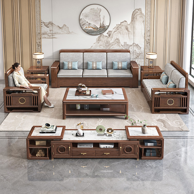 迪美尔新中式胡桃木沙发政府补贴