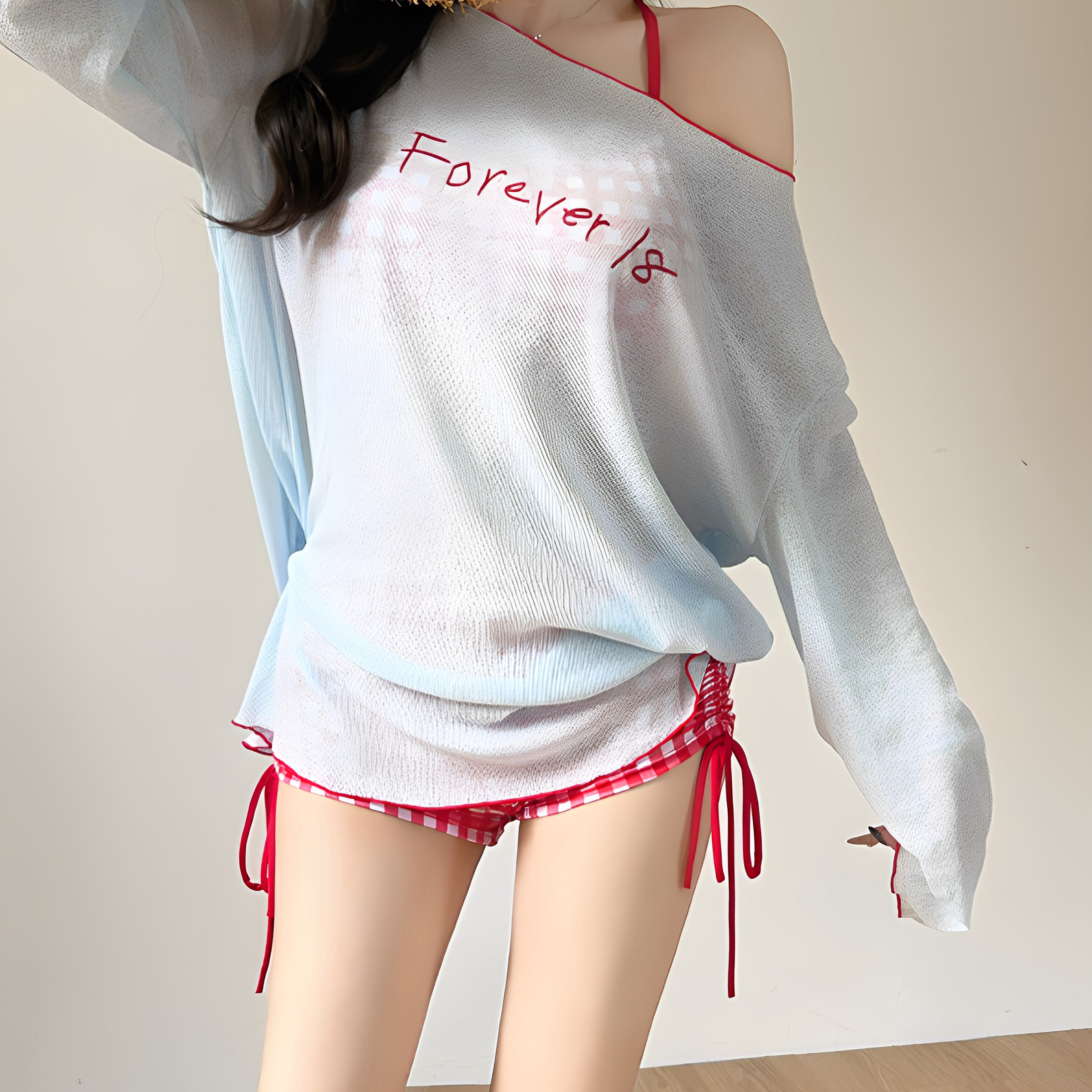 ins复古甜美分体泳衣女三件套