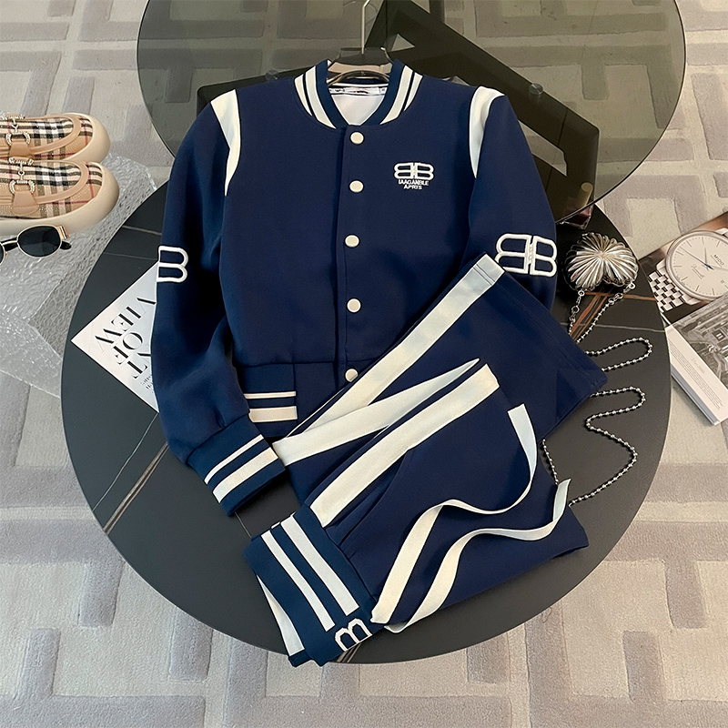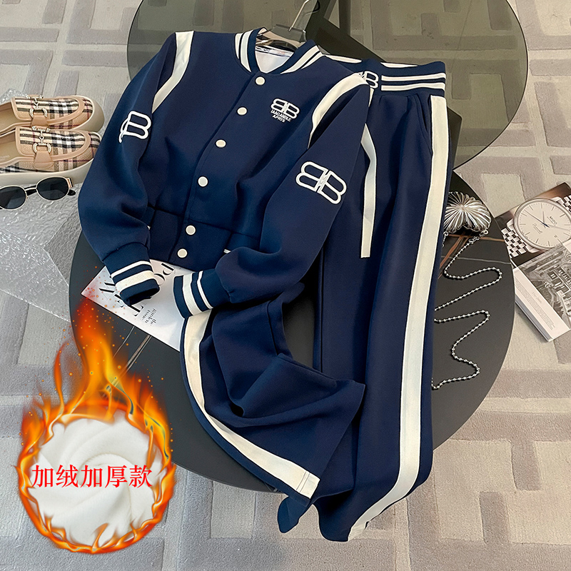 今年流行漂亮套装女春秋冬加厚加绒棒球风裤子休闲运动服两件套装