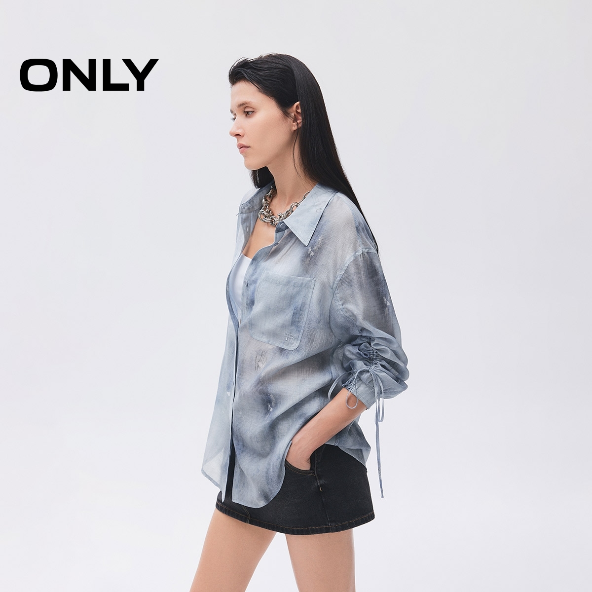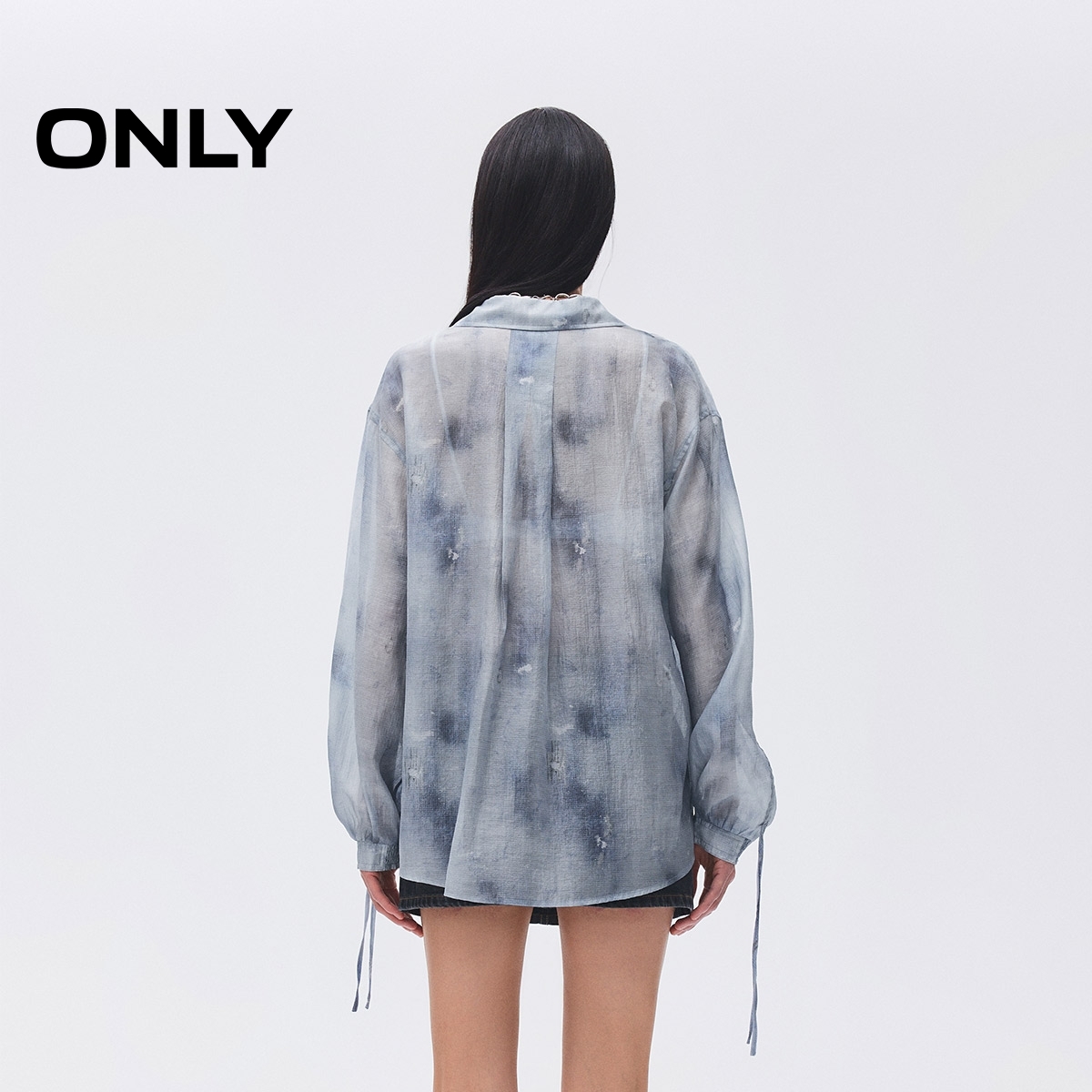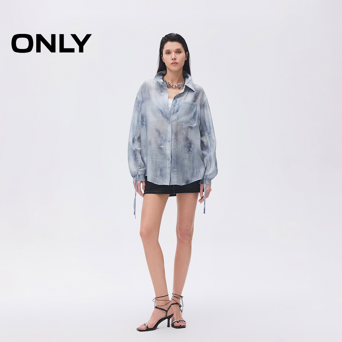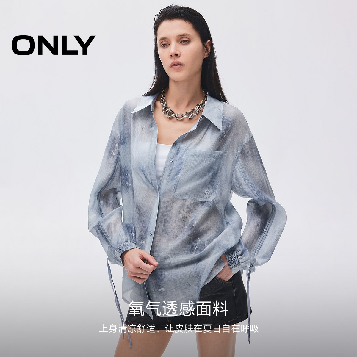 ONLY2025秋季新款潮酷波嬉风印花袖身抽褶设计透气翻领宽松衬衫女
