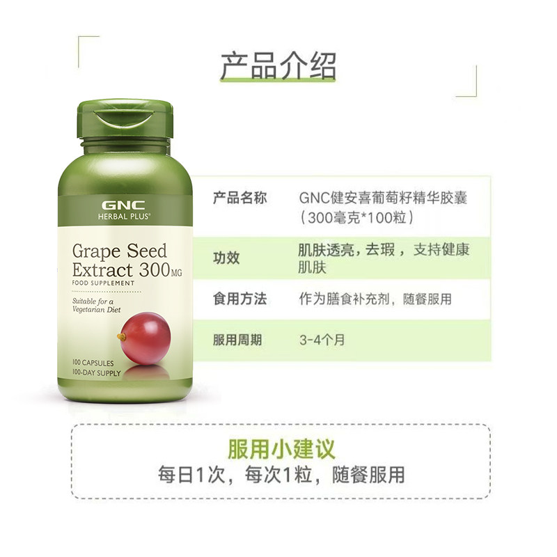 美国直邮GNC健安喜浓缩提取葡萄籽精华原花青素胶囊500mg原装进口