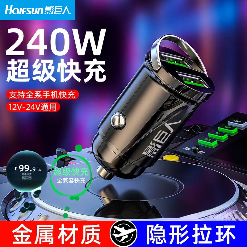 影巨人金属车载手机充电器超级快充240W迷你隐形点烟器大功率车充
