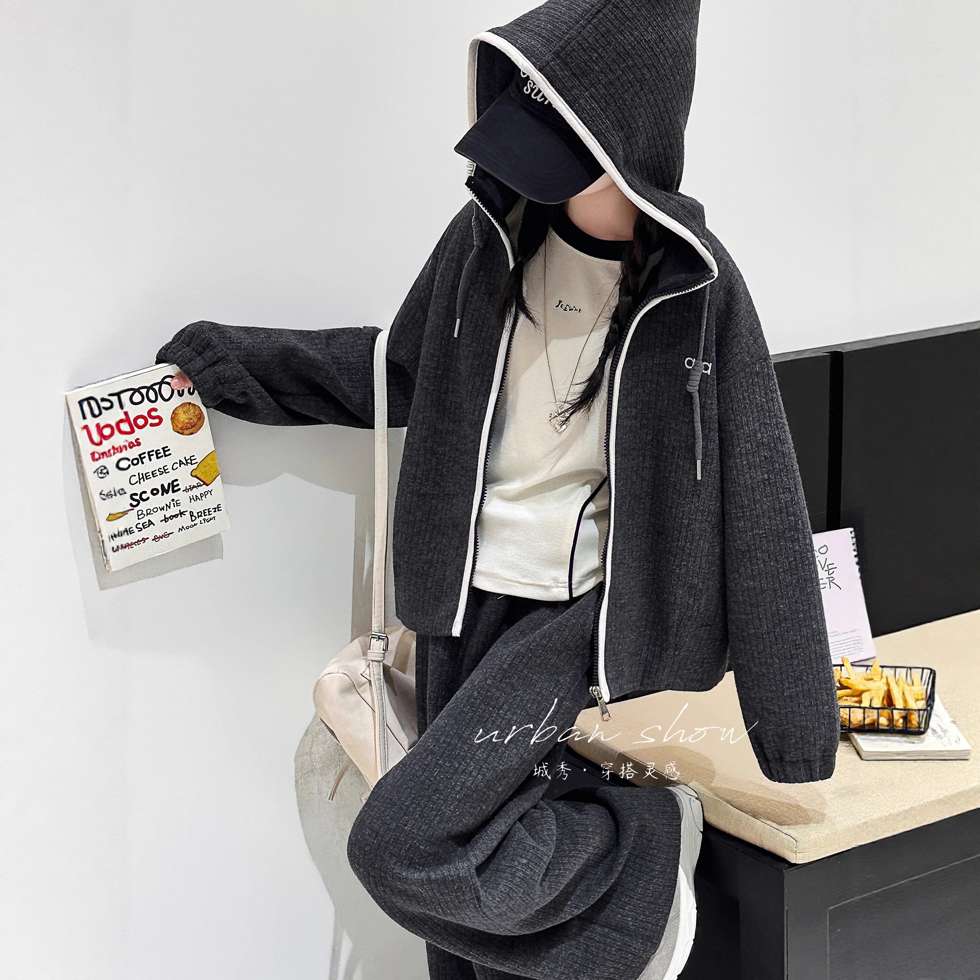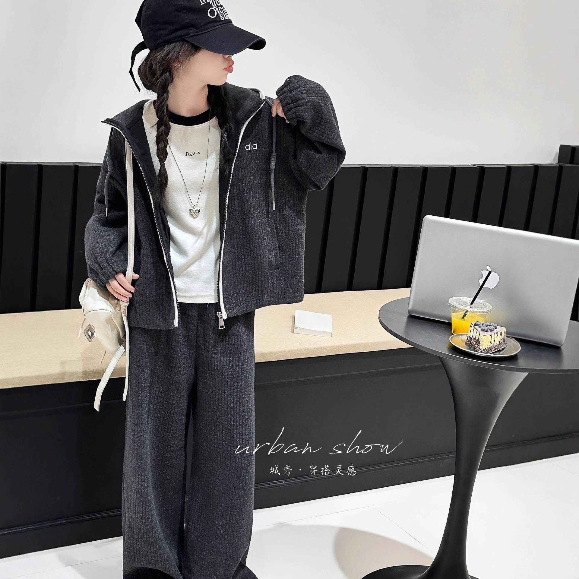 女童冬装套装2025新款儿童秋冬宽松休闲加绒拉链外套阔腿裤两件套