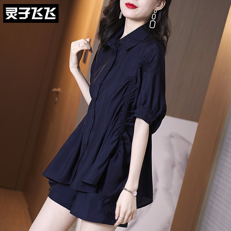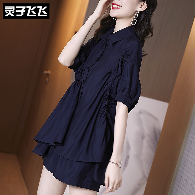 2020年新款夏季轻熟赫本风小个子休闲时尚衬衫阔腿短裤两件套装女