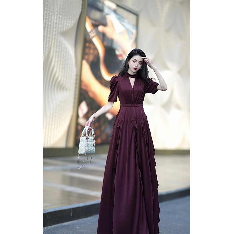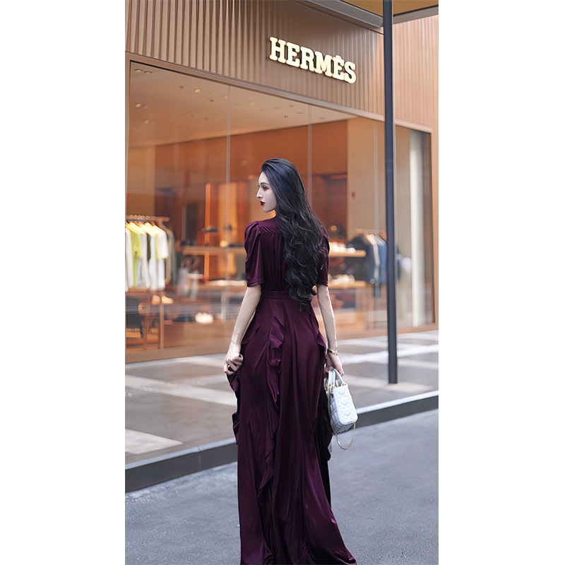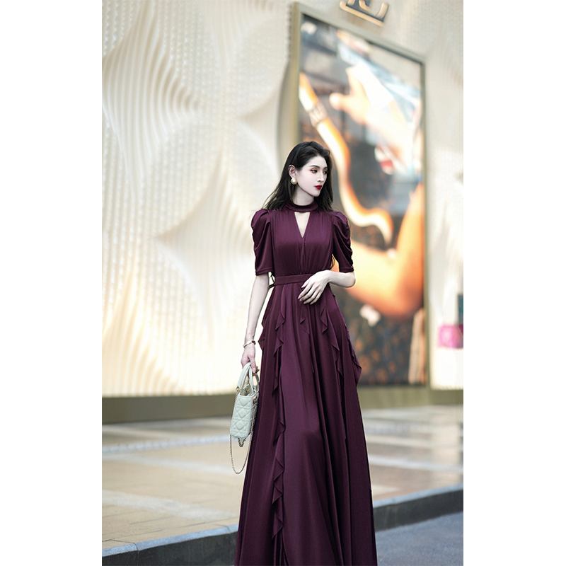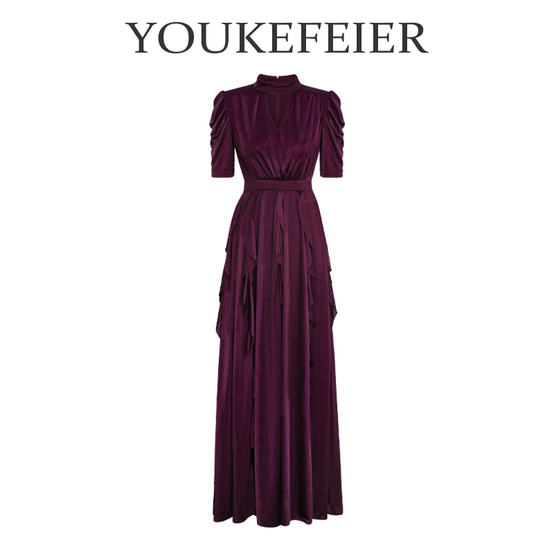 尤克菲儿 原创设计夏季轻奢高定醋酸气质修身法式轻奢优雅连衣裙