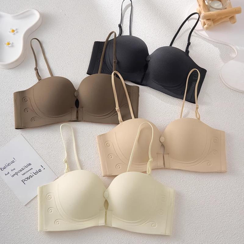 粉底液前扣无肩带内衣女小胸聚拢显大不空杯防滑抹胸无痕隐形文胸