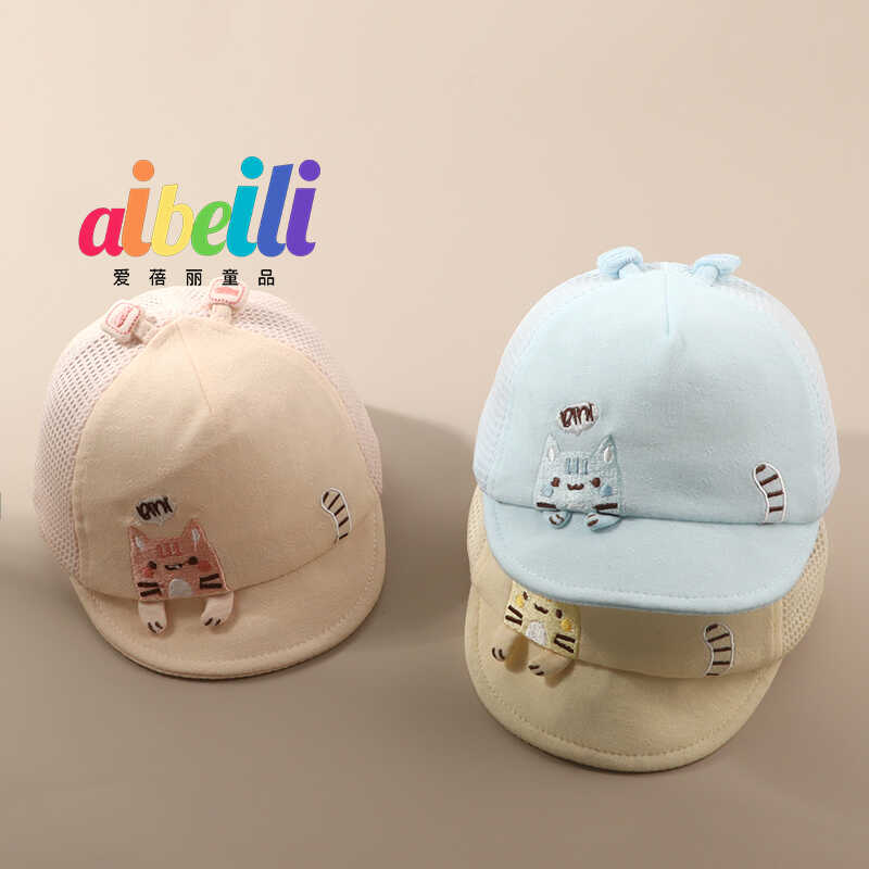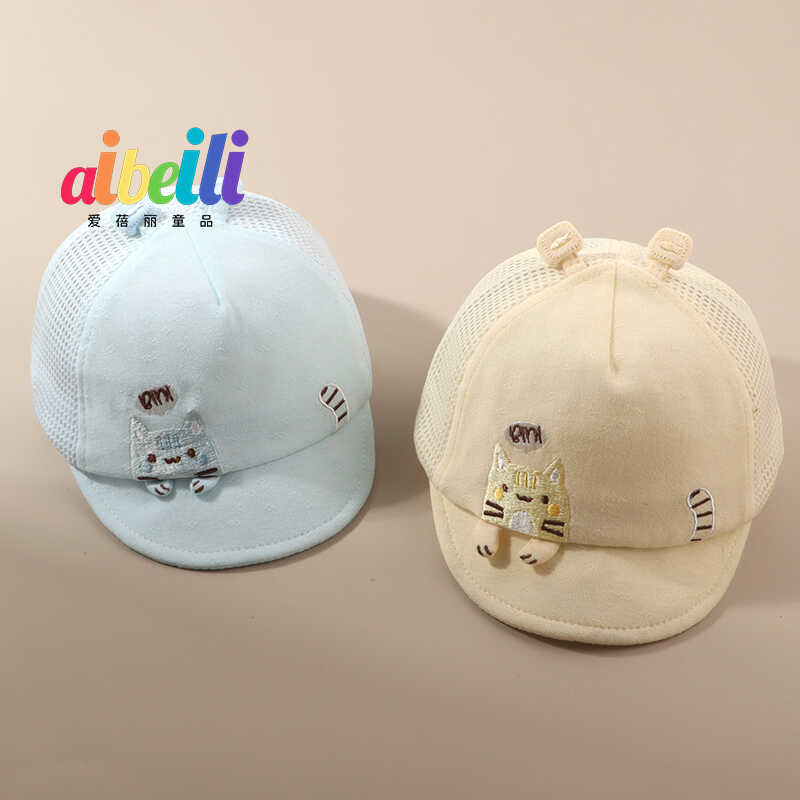 夏季网眼婴儿帽子鸭舌帽新生儿纯棉可爱超萌初生小月龄遮阳棒球帽