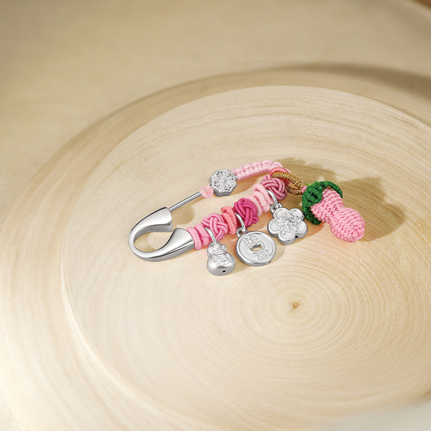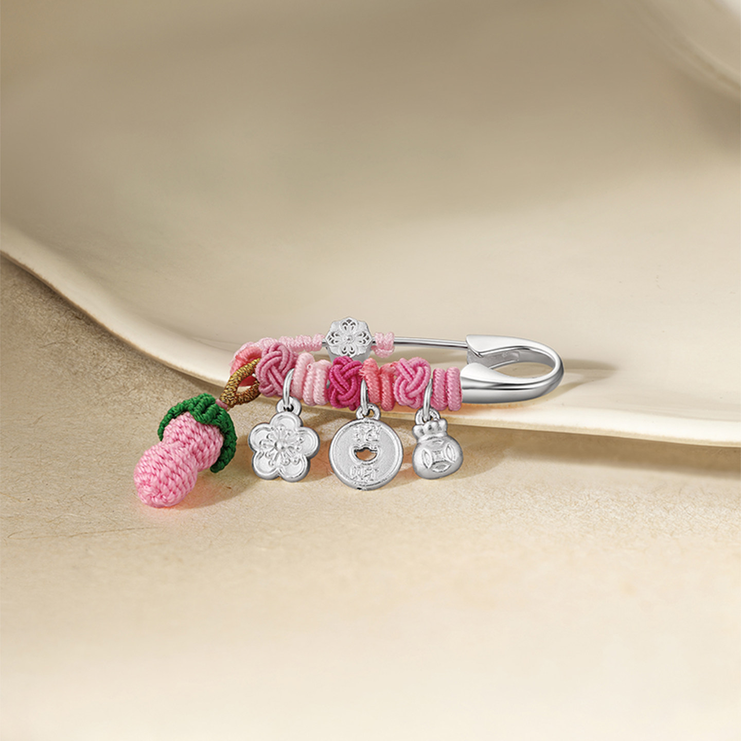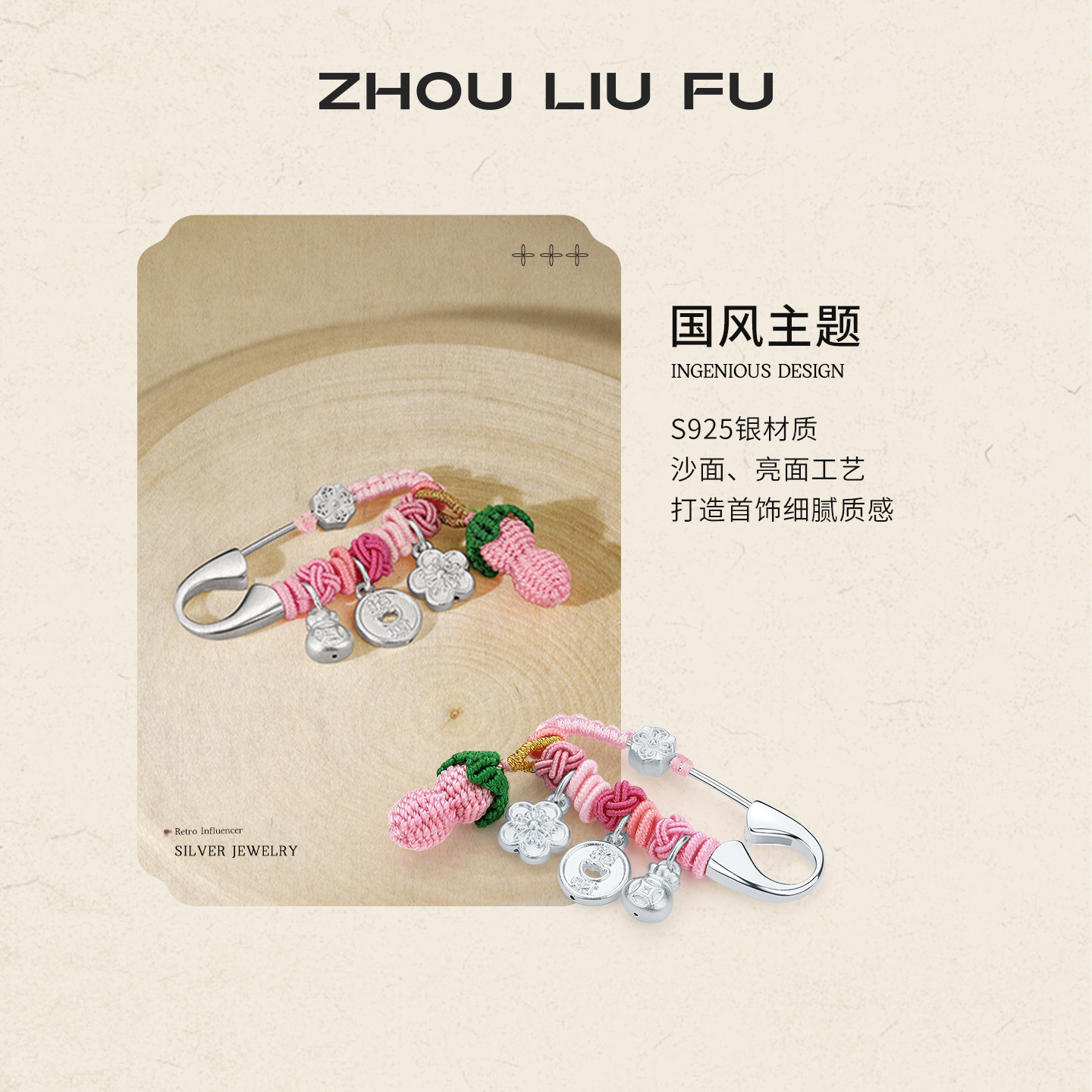 周六福吉祥五宝胸针宝宝款国风平安锁银饰S925银设计感送宝宝礼物