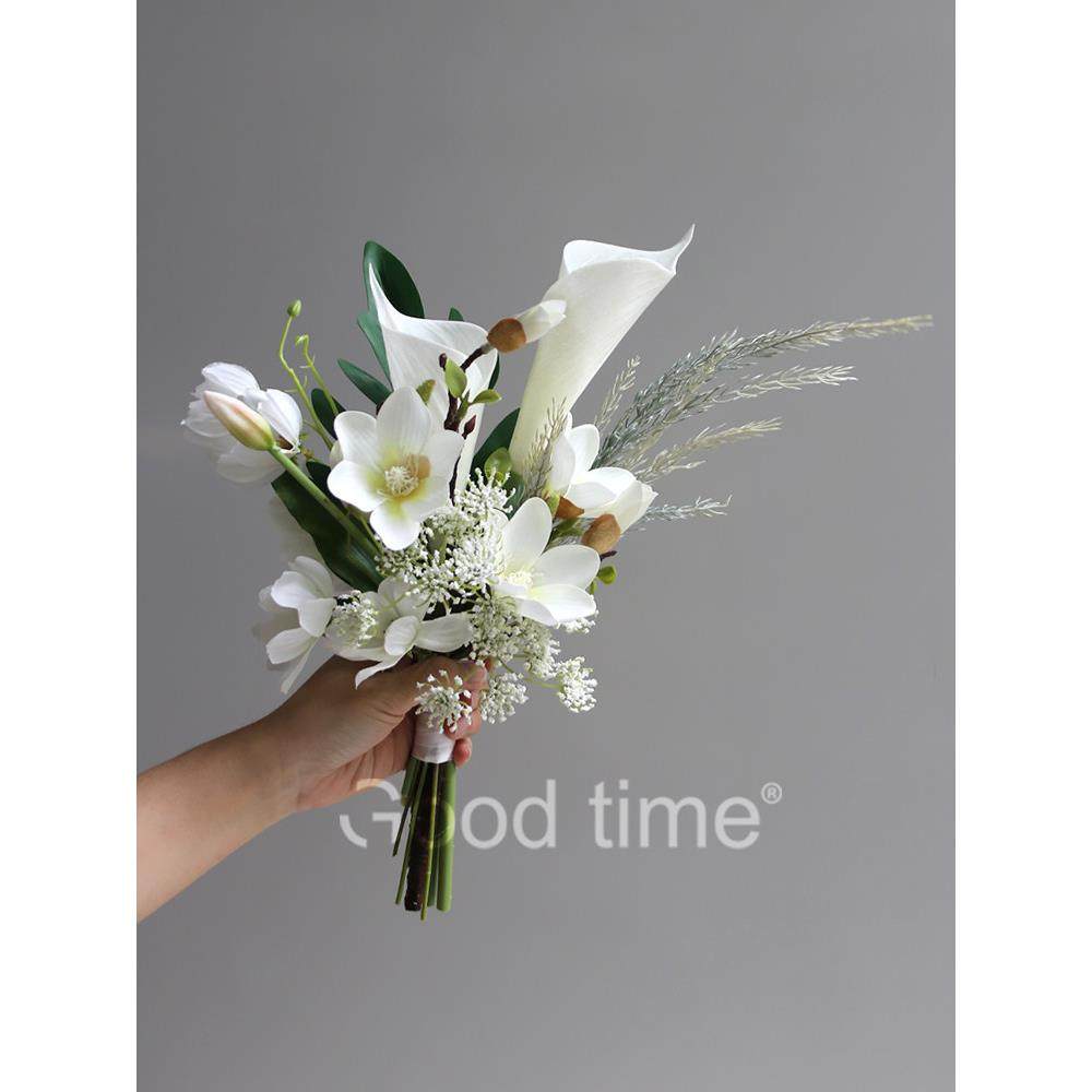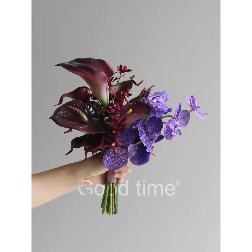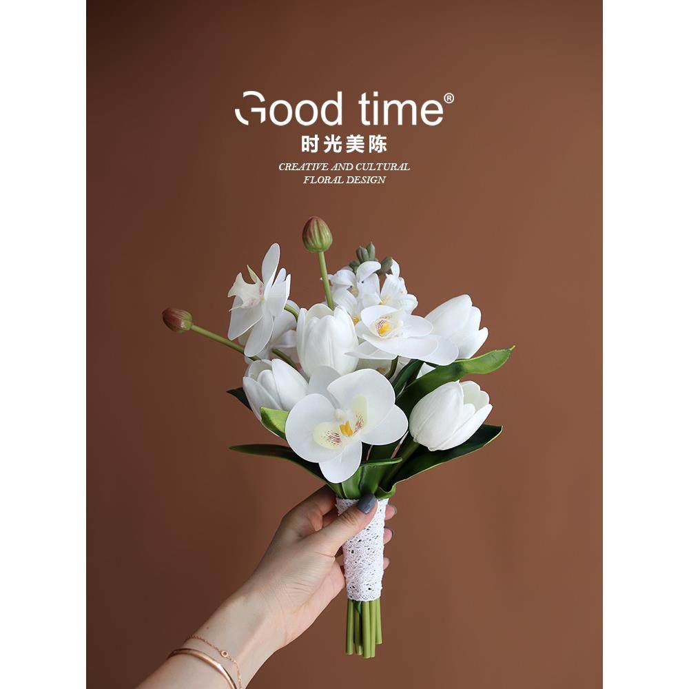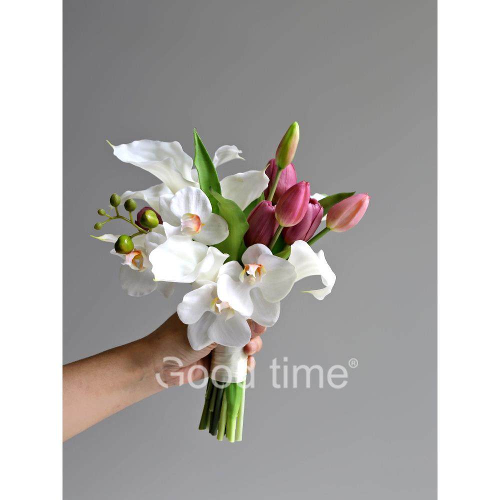 手捧仿真花束马蹄莲郁金香法式优雅新娘结婚摄影道具家居装饰摆件