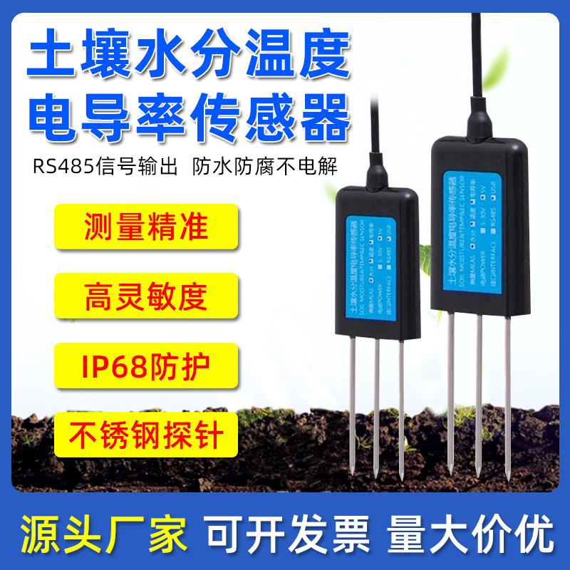 土壤温湿度电导率多合一传感器农业大棚土壤水分变送器EC检测仪