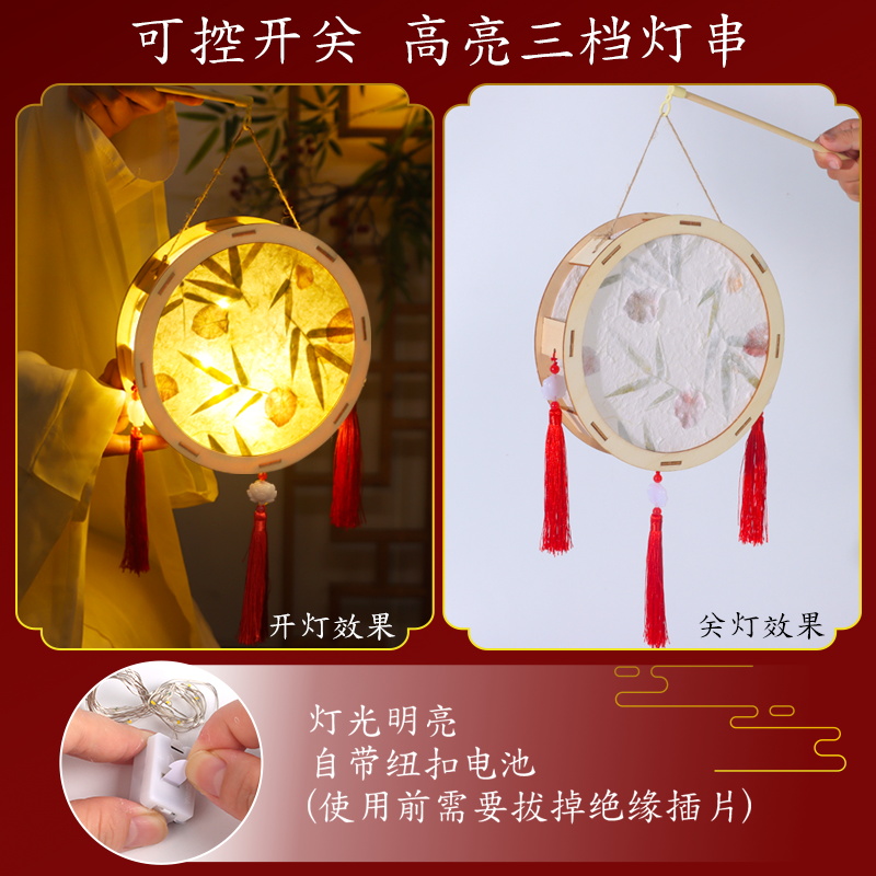 非遗花草纸灯笼手工diy材料包幼儿园儿童手提发光古风花灯