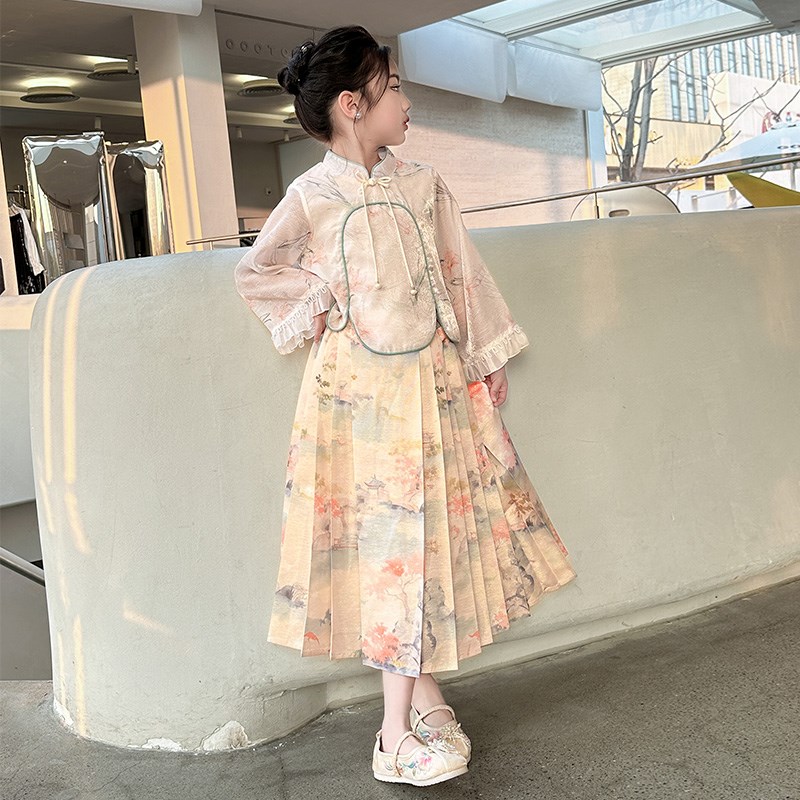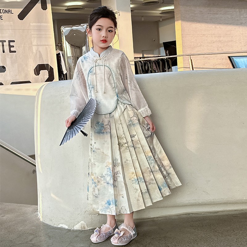女大童马面裙套装2025新款春季女孩日常可穿国潮中国风汉服两件套