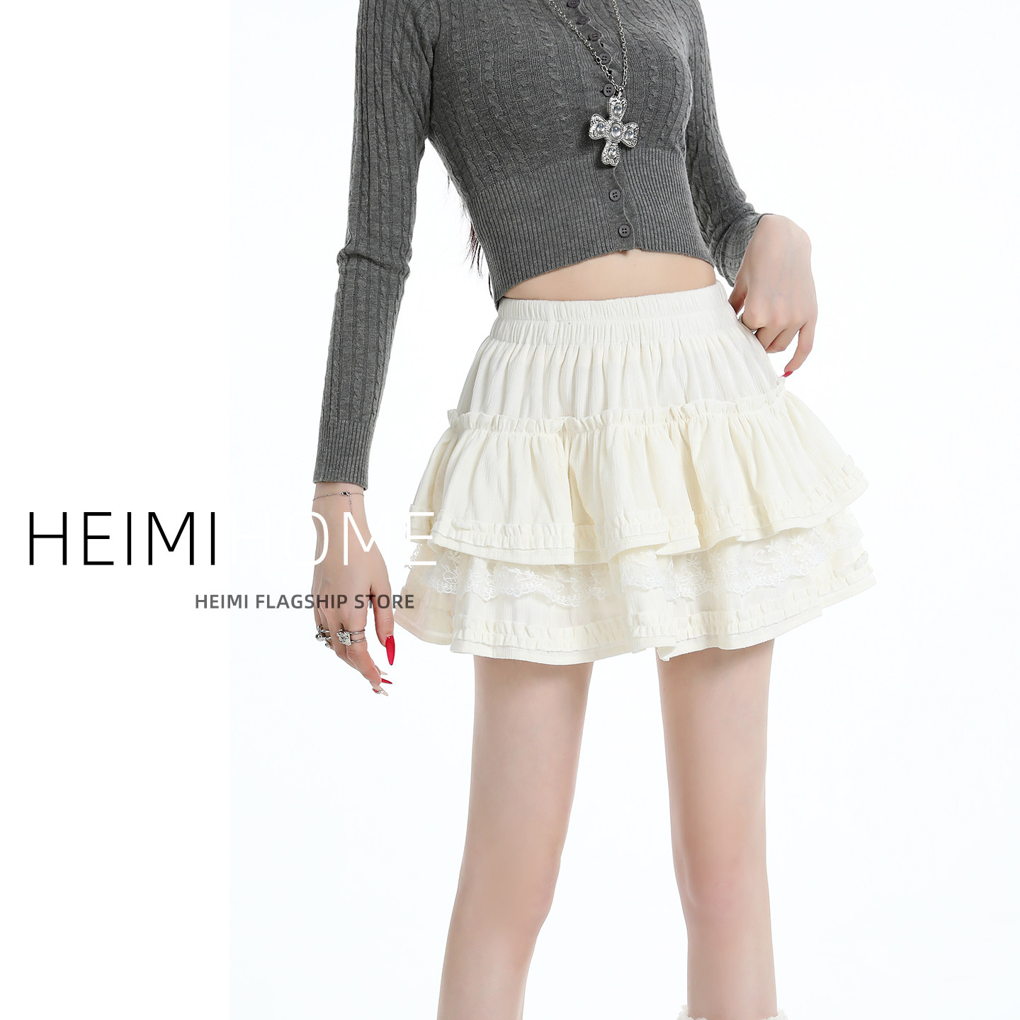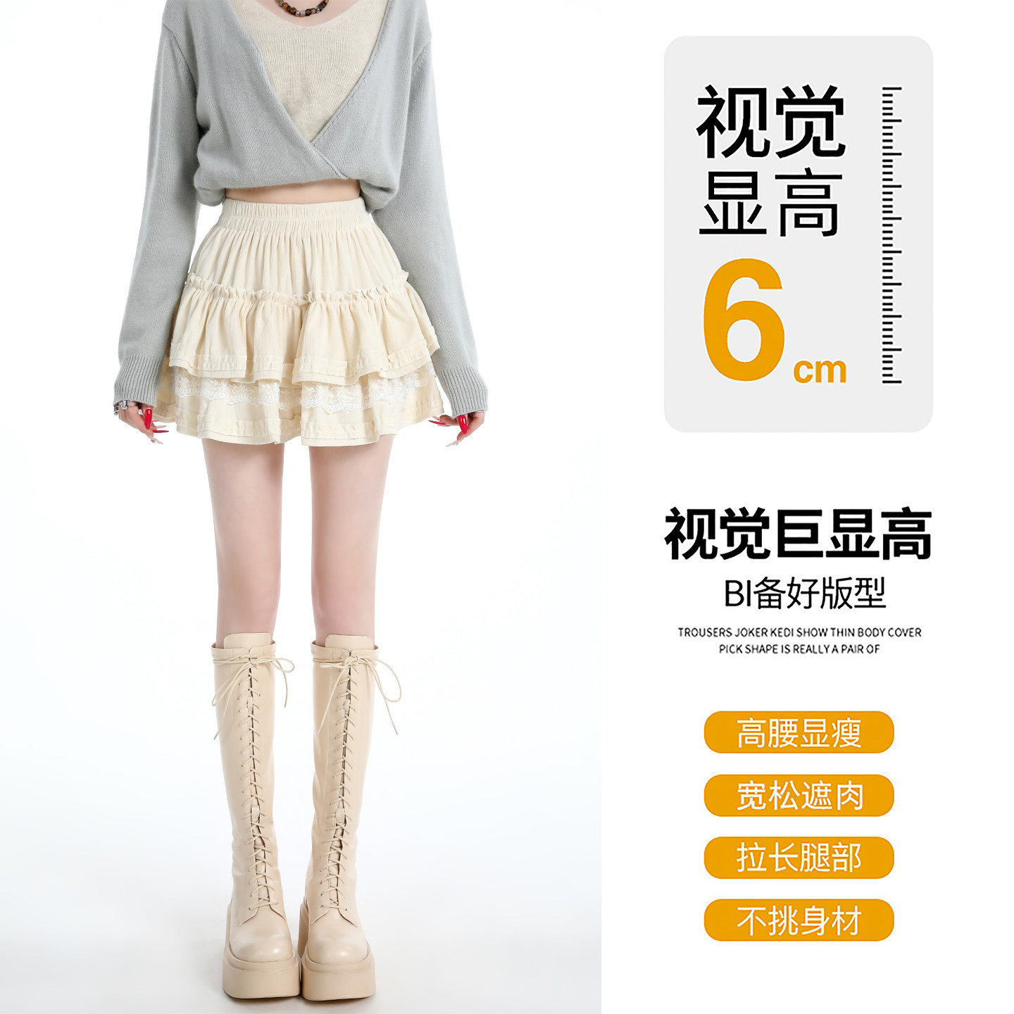 秋冬高腰蕾丝花边蛋糕半身裙