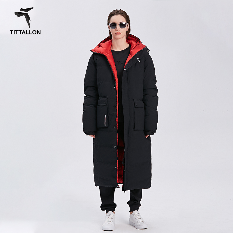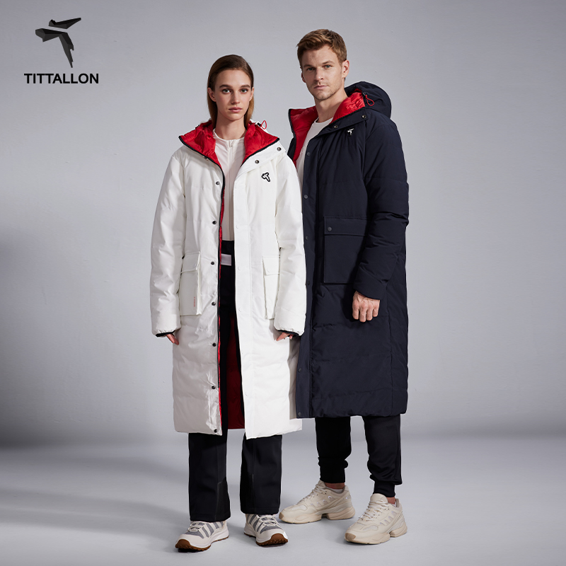Tittallon体拓长款过膝羽绒服女800蓬极寒双面穿防风加厚鹅绒服男