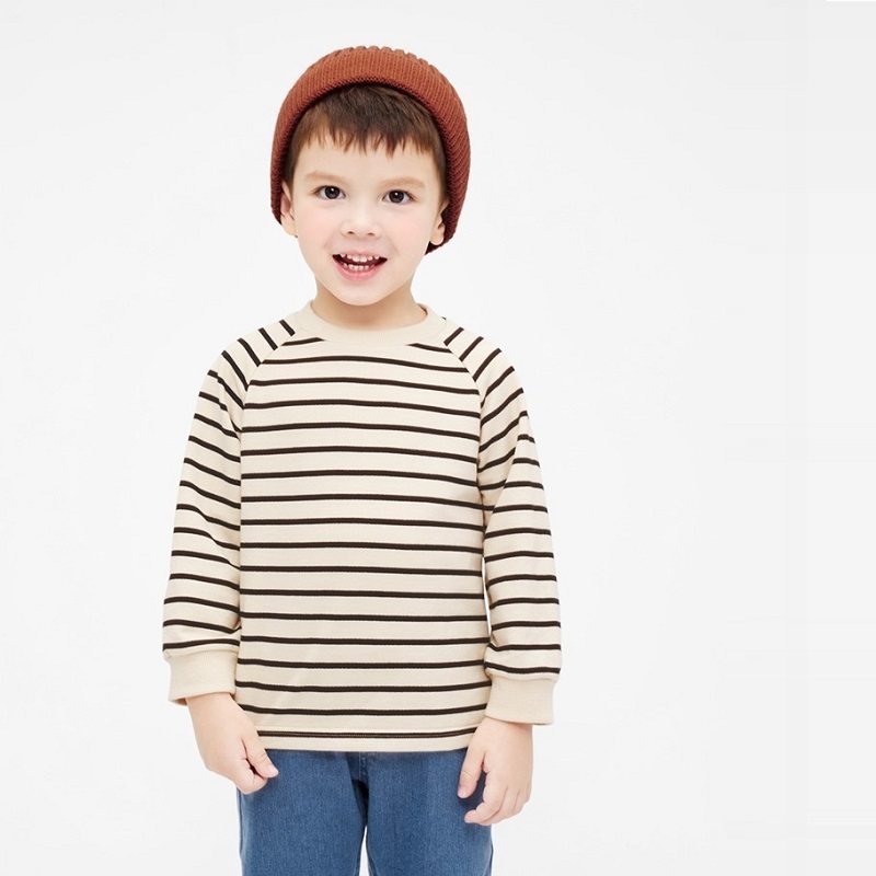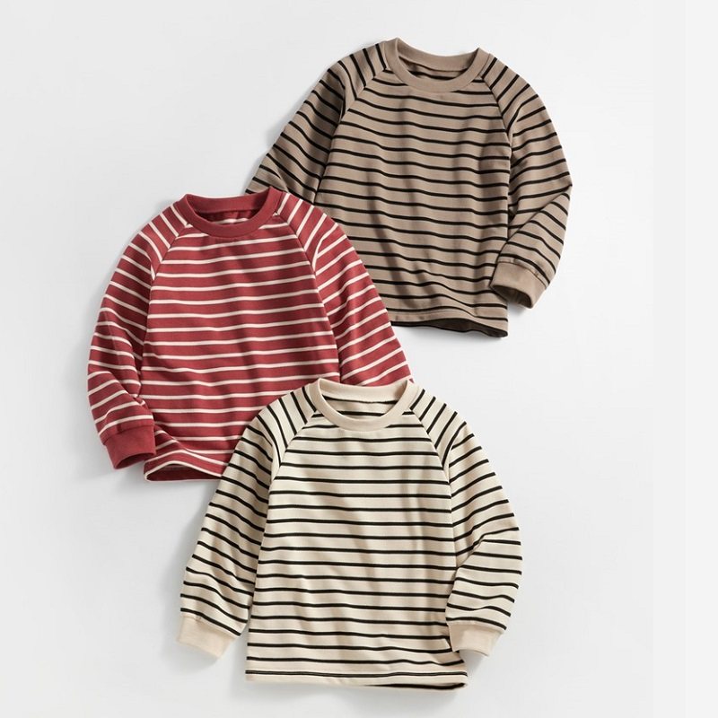 男童纯棉毛圈卫衣儿童春秋打底加厚T恤女童条纹圆领长袖外贸童装t
