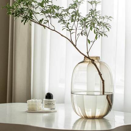 高级感花瓶摆件玻璃水培吊钟雪柳马醉木水培插花鲜花客厅落地装饰
