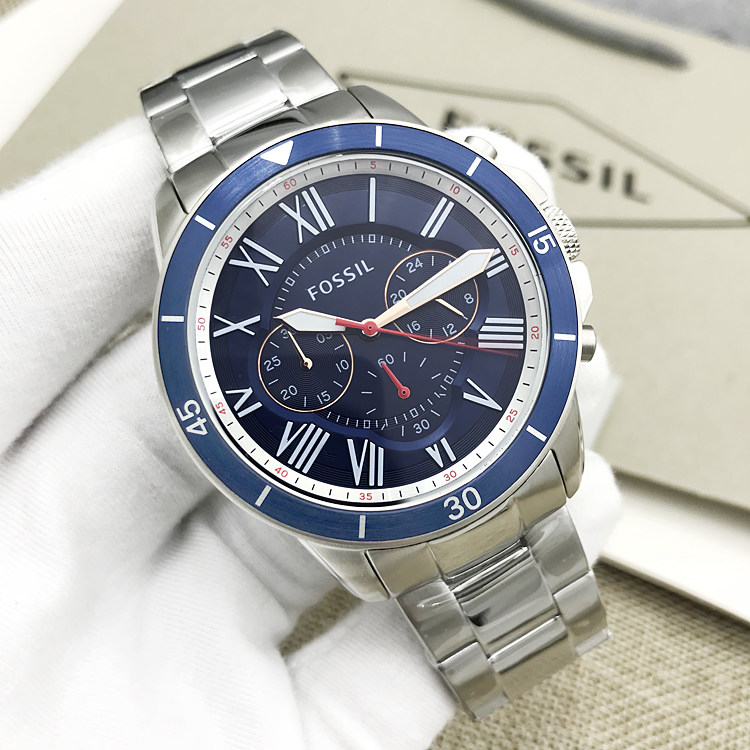 FOSSIL手表不锈钢三眼计时商务休闲酷弦石英机芯防水男表