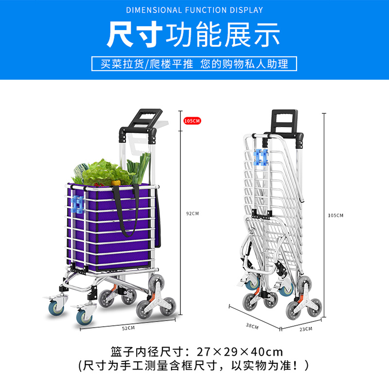 购物车买菜e车小拉车轻便手拉车便携折叠家用拉杆车老人爬楼梯拖