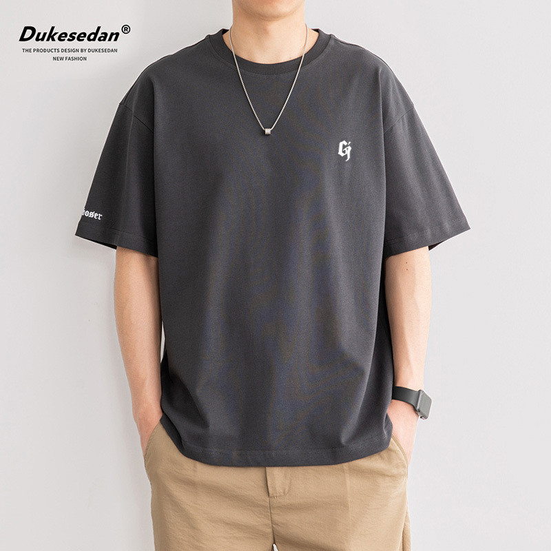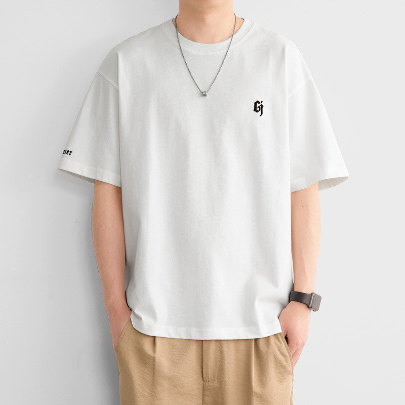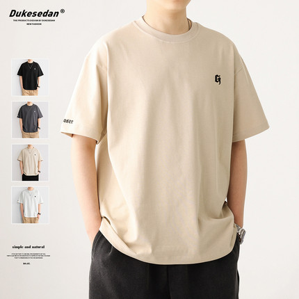 短袖t恤男士夏季圆领宽松简约刺绣大码上衣潮牌休闲半袖体恤男款