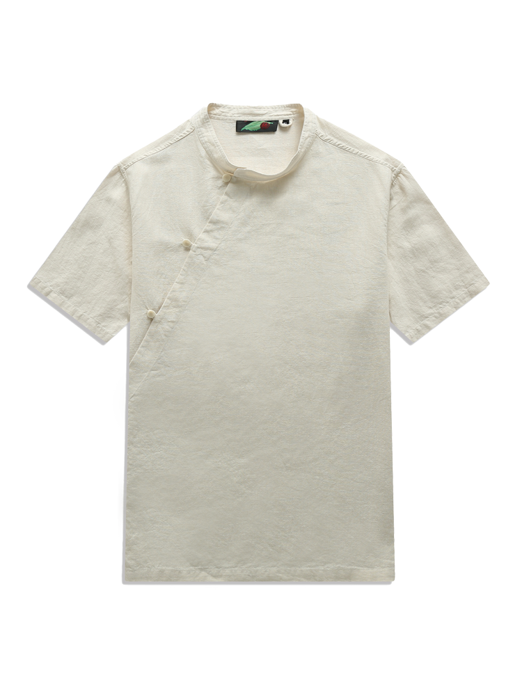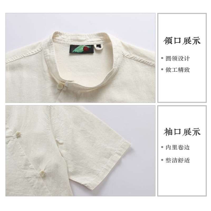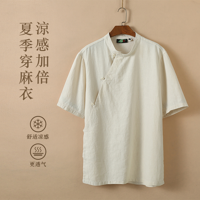 楠唐装中国风夏季薄款复古苎麻t恤男全麻休闲短袖麻男士上衣丹青