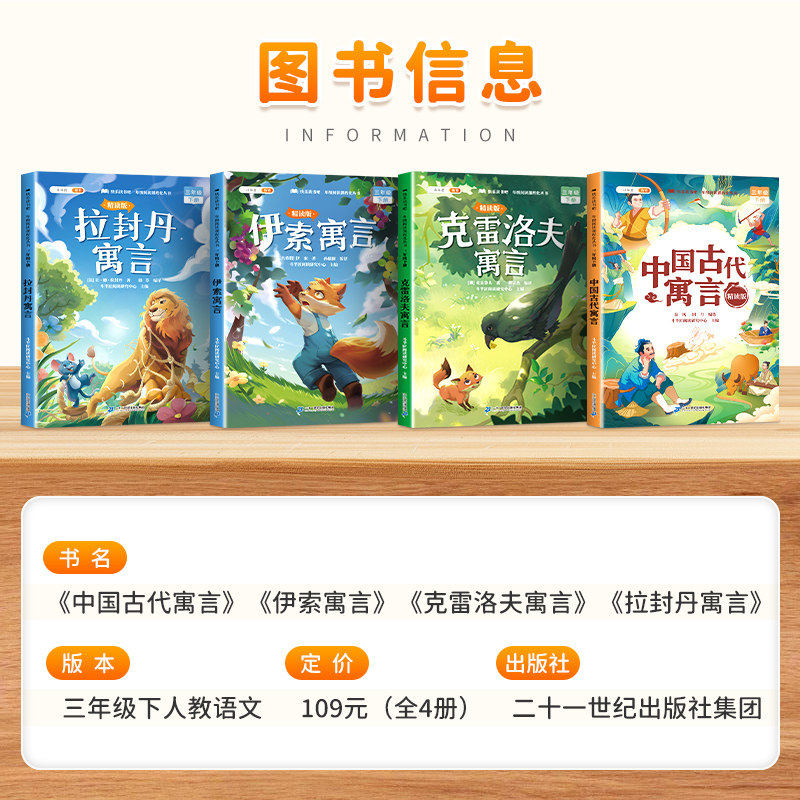 中国古代寓言故事三年级下册必读正版的课外书快乐读书吧三下伊索寓言克雷洛夫拉封丹上册配套人教版寒假阅读书籍安徒生童话格林