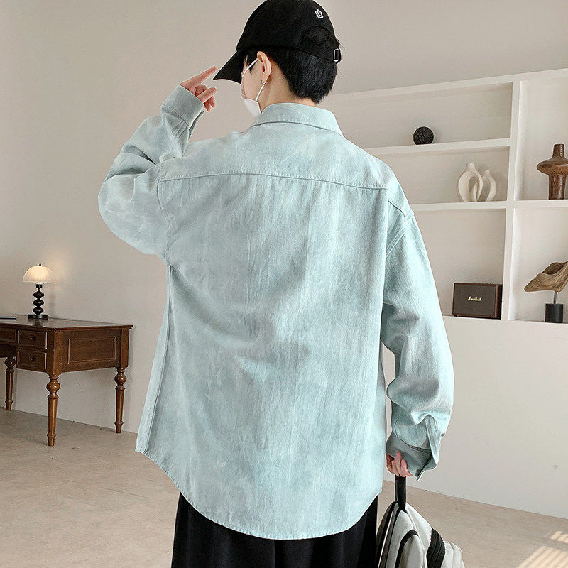 春季青少年2026韩系牛仔翻领外套潮牌扎染个性按扣设计百搭夹克