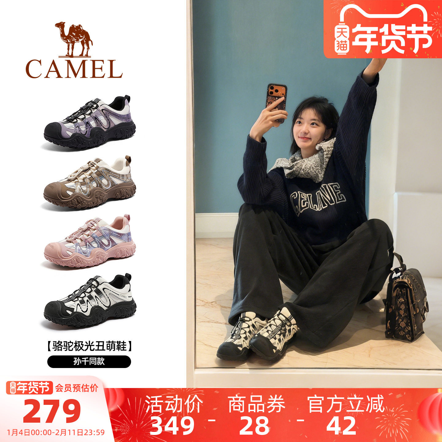 骆驼极光丑萌鞋女鞋2026春季新款户外登山鞋女款老爹鞋徒步运动鞋
