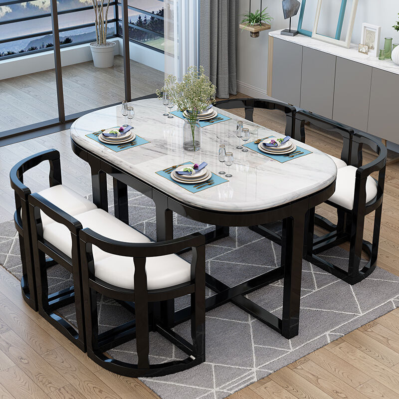 大理石餐桌椅组合方圆形实木餐桌简约现代小户型家用饭桌网红隐形