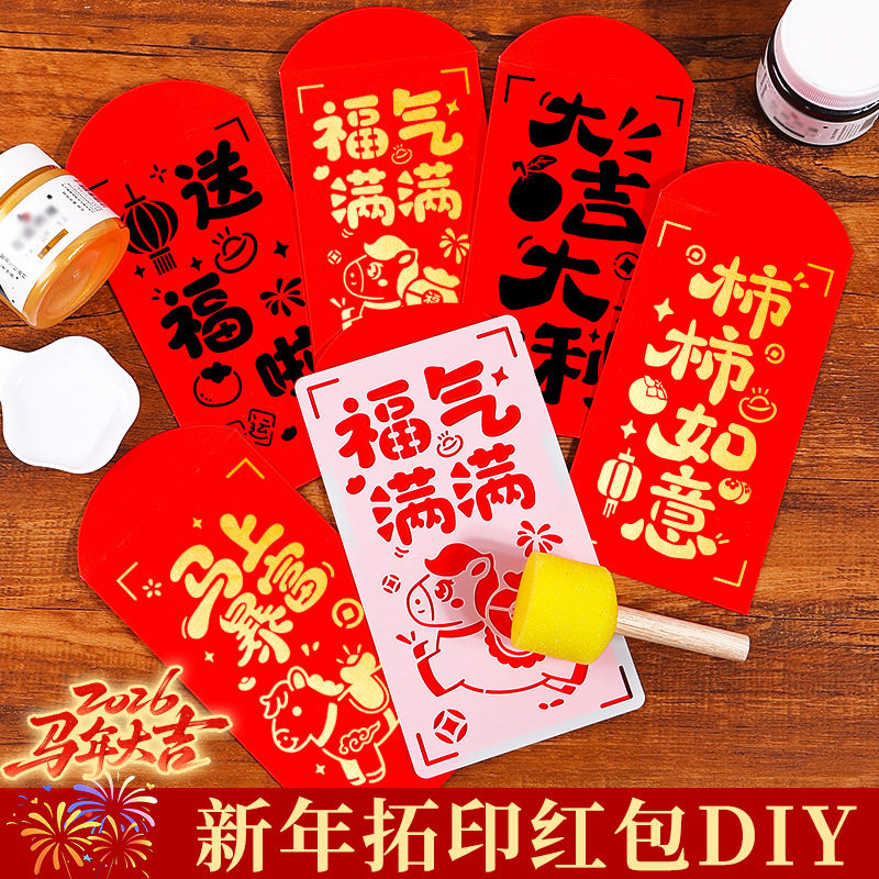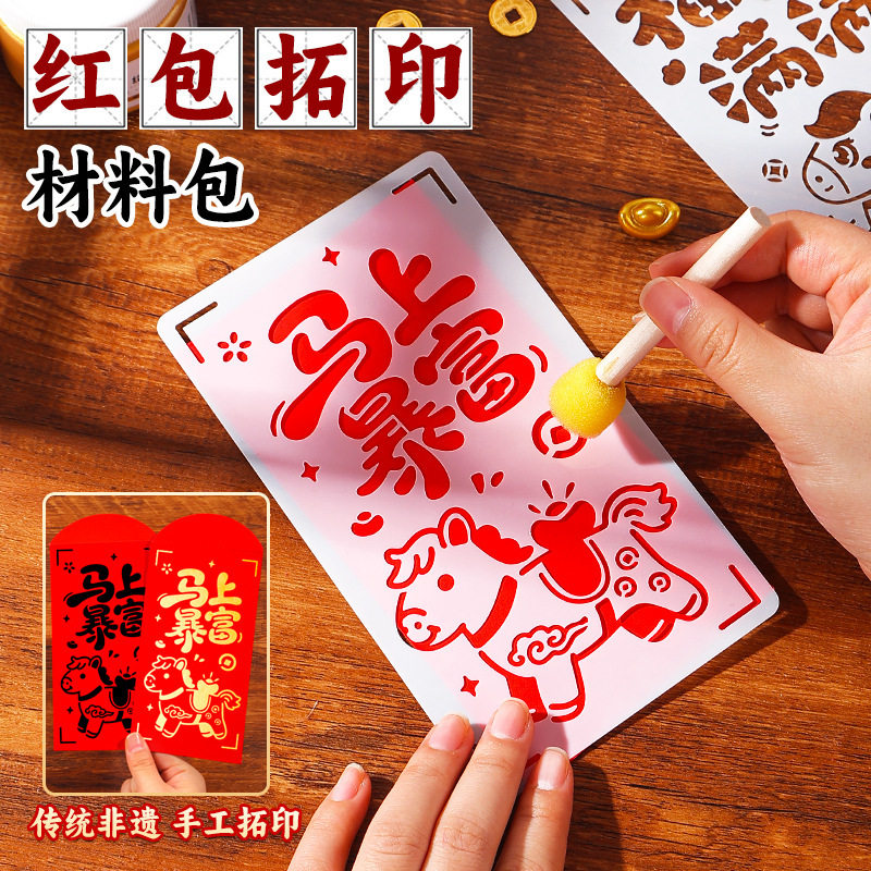 手工diy马年红包拓印画 材料包亲子活动儿童年画福字印刷压岁红包