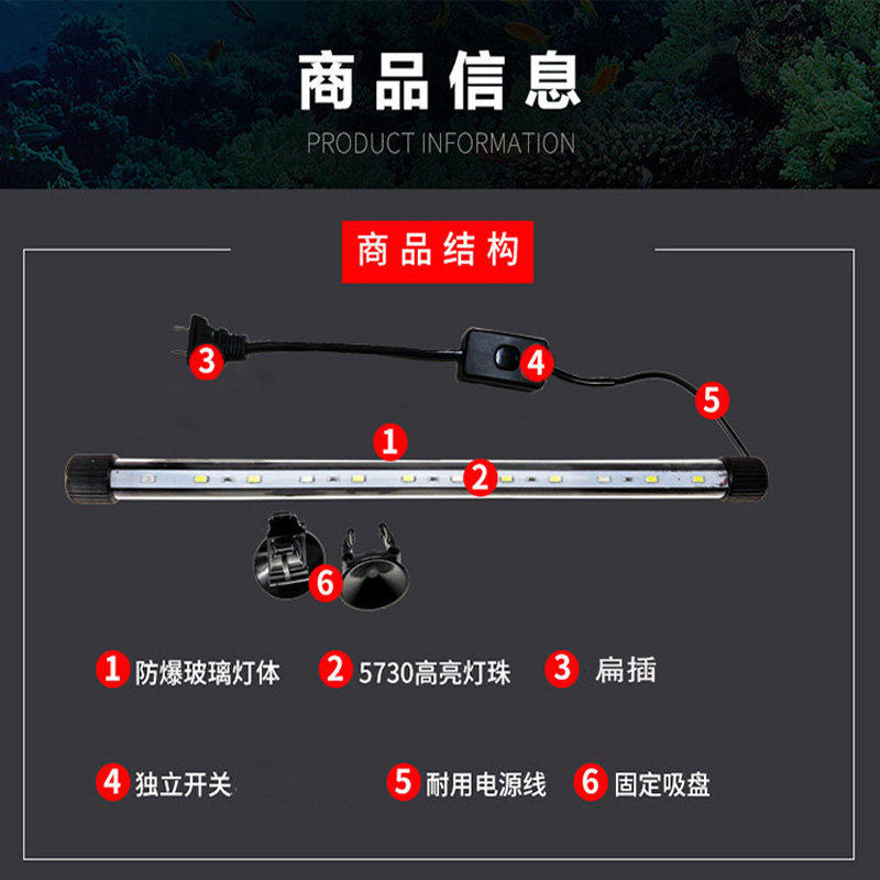 超亮LED鱼缸潜水灯配缸灯水族箱防水灯水陆两用增艳中小型水草灯