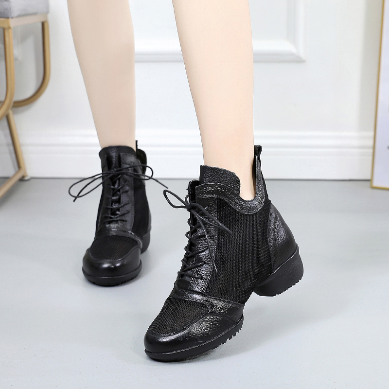 意中飞舞蹈鞋女广场舞鞋夏季网布真皮软底现代跳舞鞋镂空水兵舞鞋