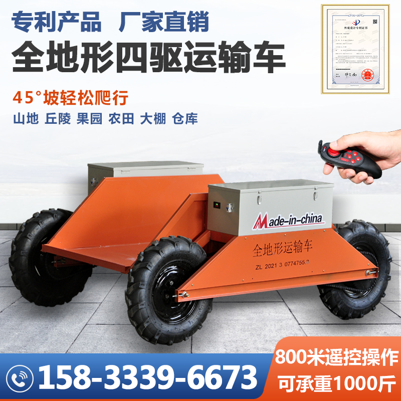 全地形运输车农用山地爬坡果园蔬菜运输车电动遥控四驱搬运车厂家