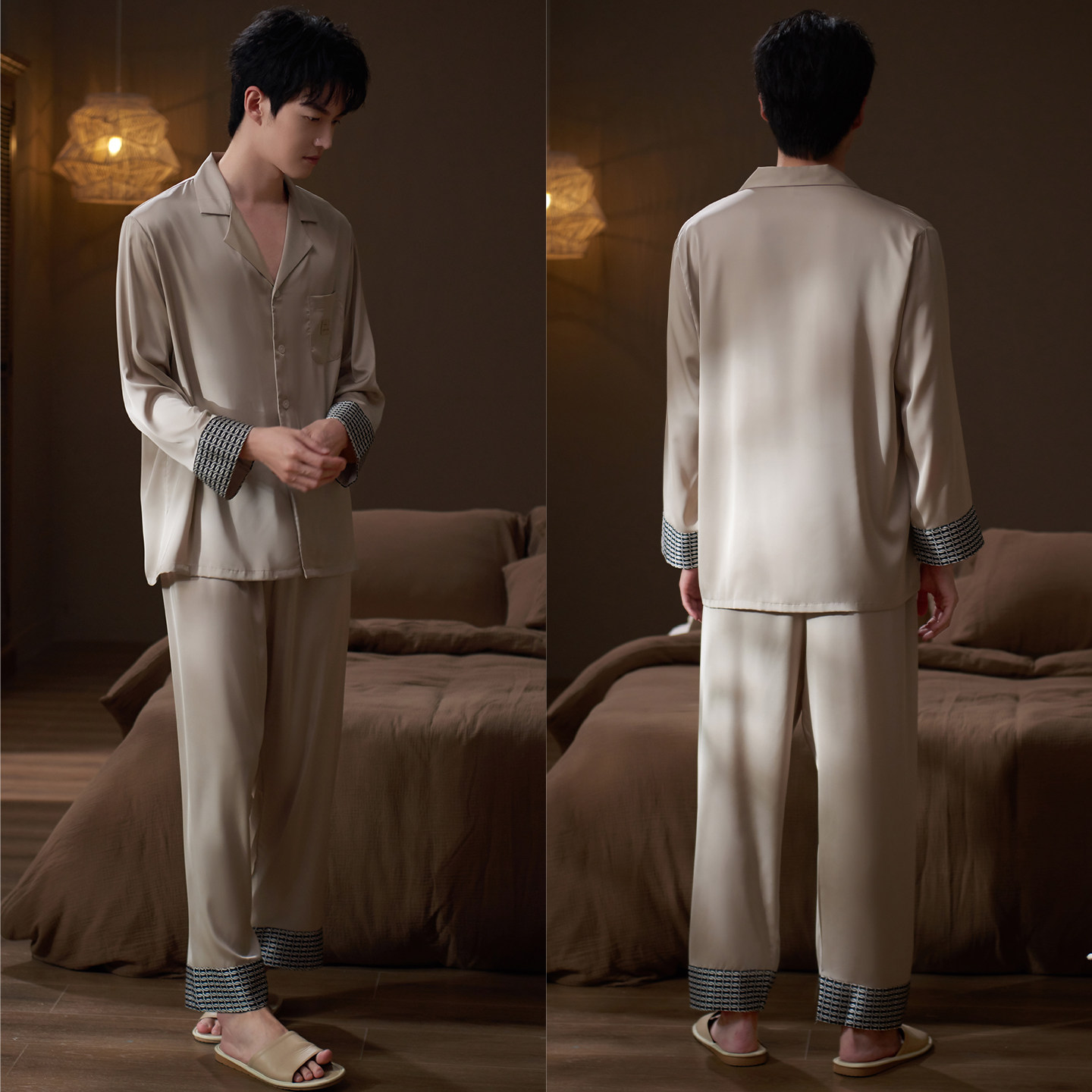 乐姿梦新款男士冰丝长袖睡衣