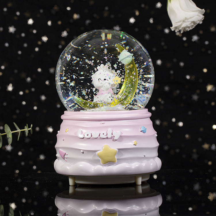 创意星空萌宠卡通水晶球儿童音乐盒生日礼物家居客厅装饰树脂摆件