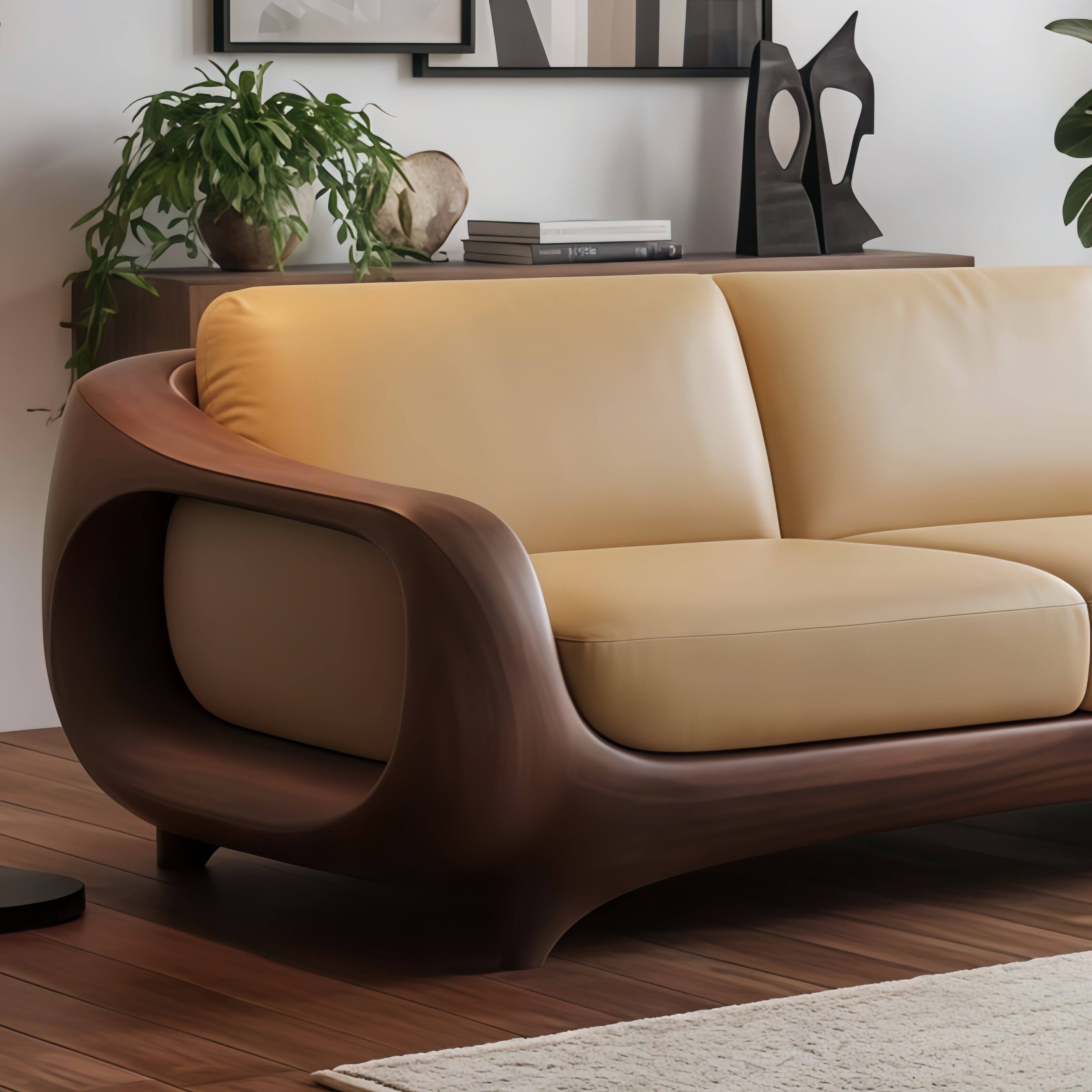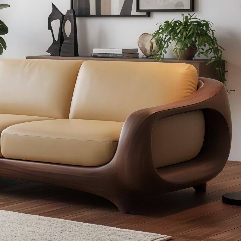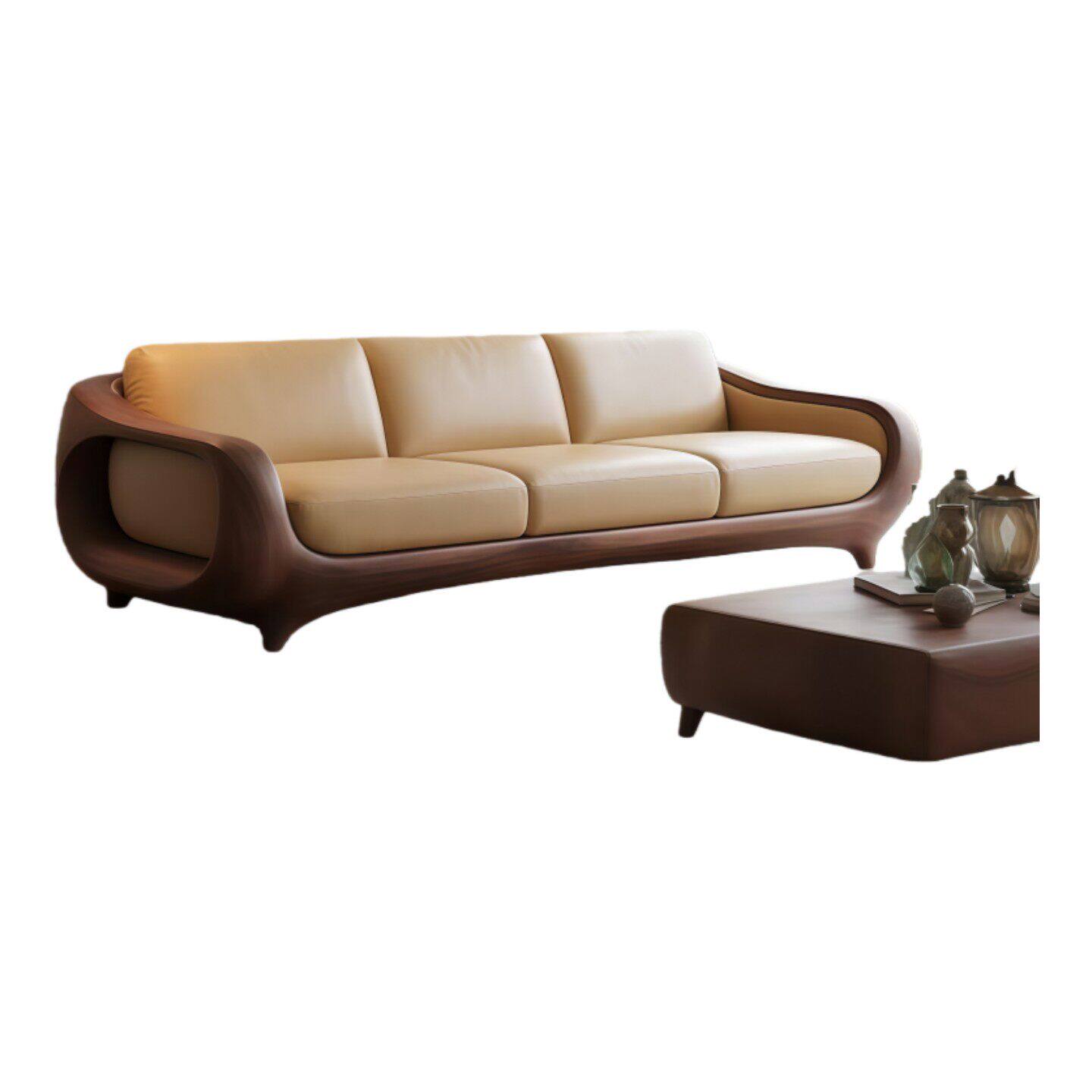 新中式实木沙发新款客厅轻奢胡桃木侘寂风高端皮艺直排三人位定制