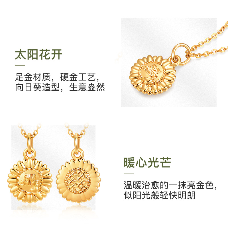 明牌珠宝5D硬金吊坠 黄金立体向日葵女士项坠足金挂件女友ASY0471