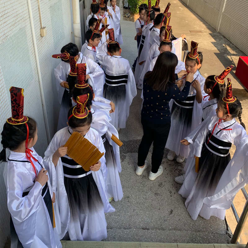 千字文演出服国学汉服儿童古装经典朗诵表演舞蹈服水墨弟子规书童