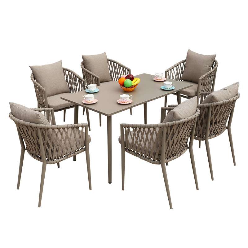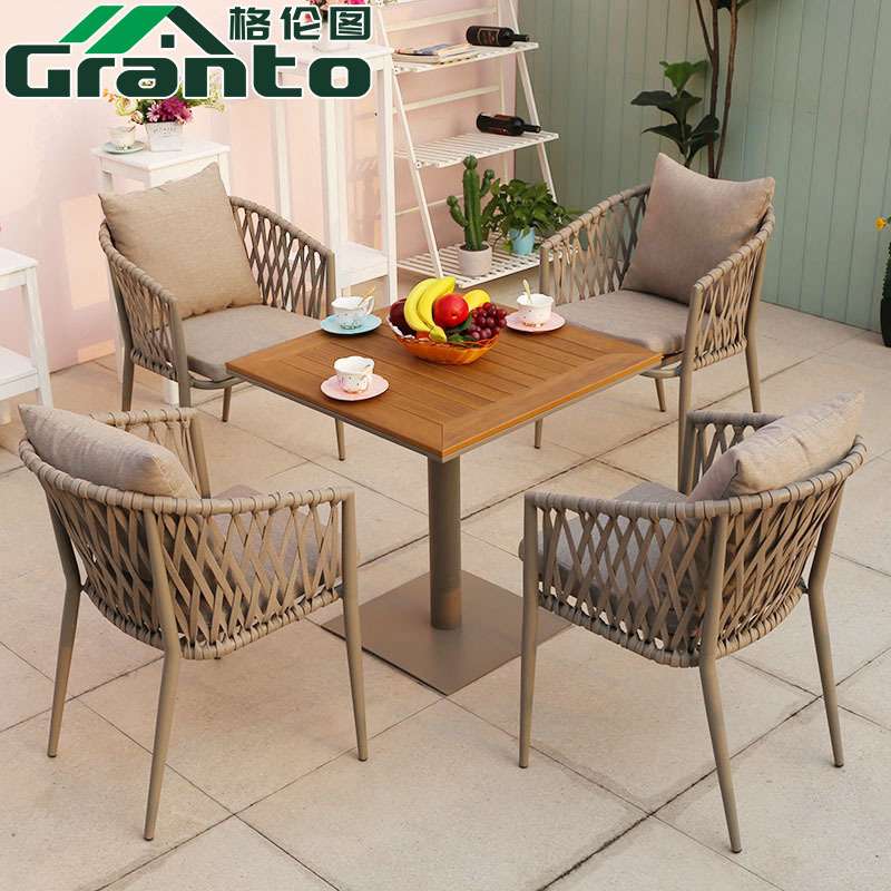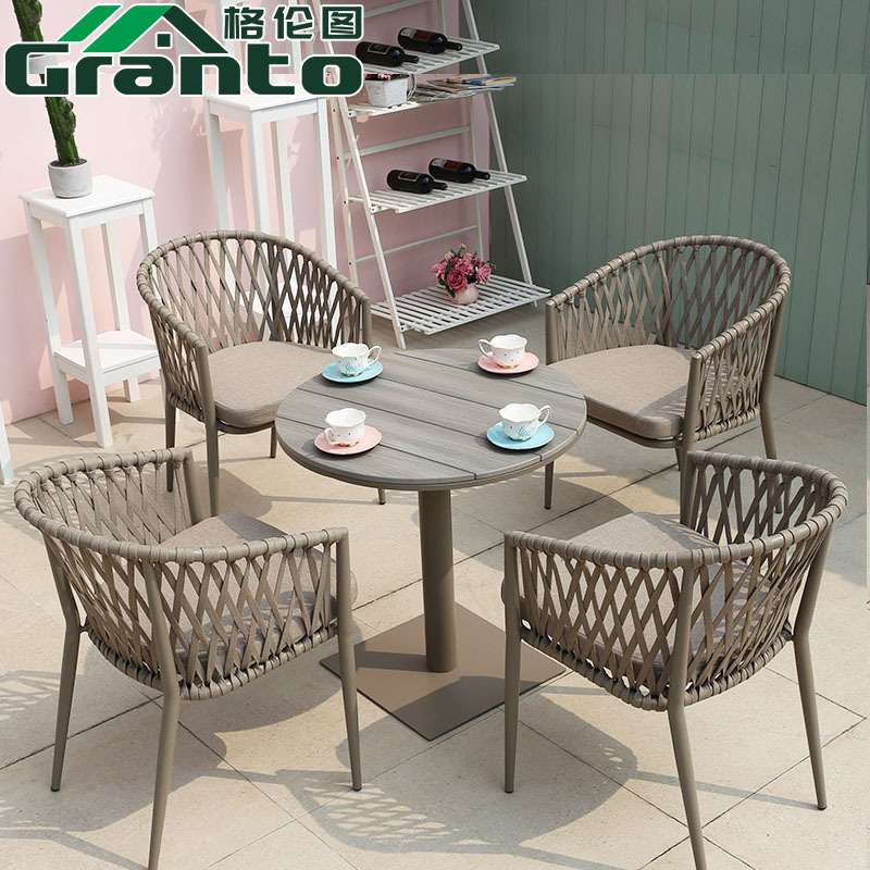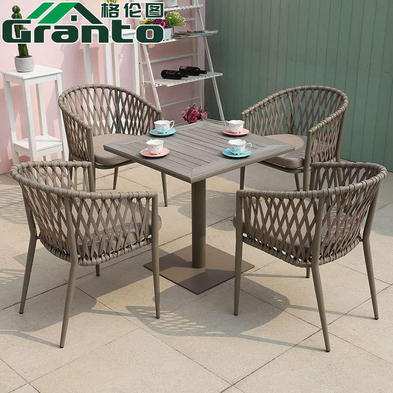 北欧户外拉绳小桌椅阳台庭院花园餐桌椅简约室外休闲绳编椅子套装