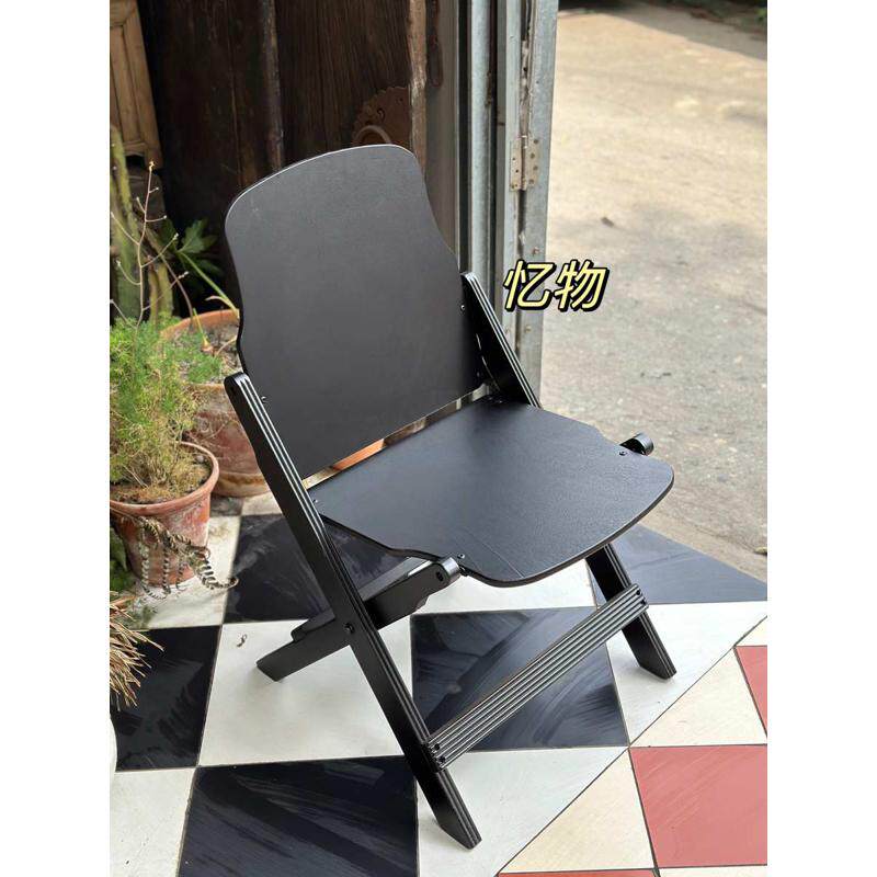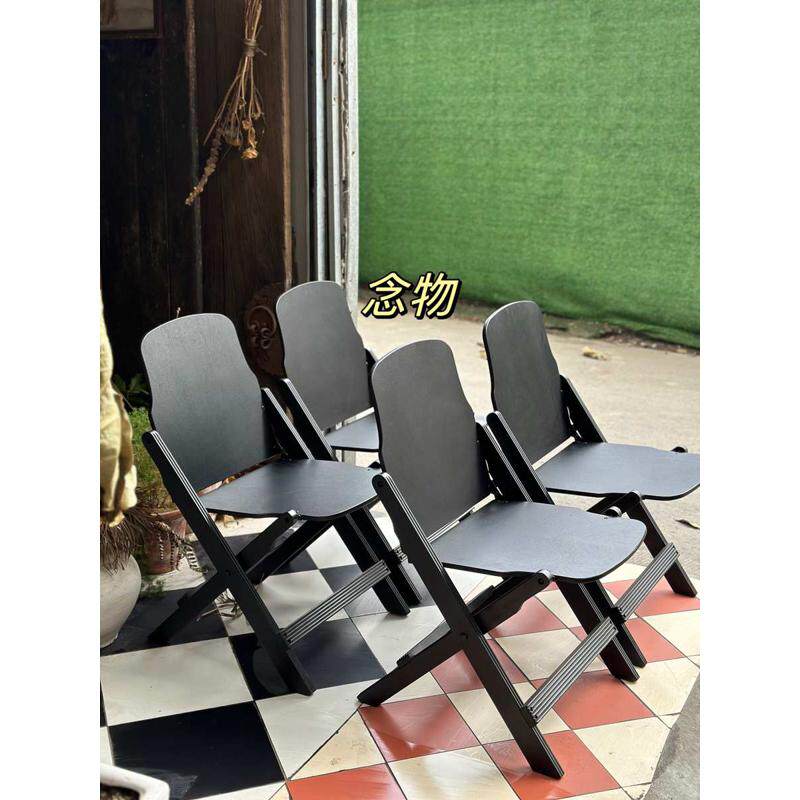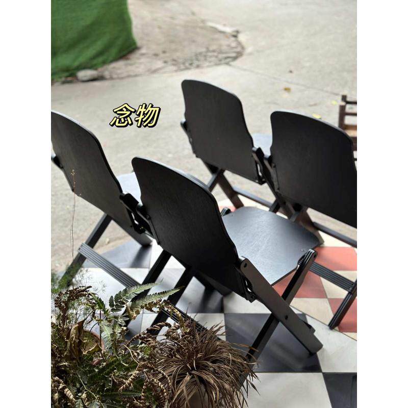 复古实木折叠椅影院折叠椅风琴椅星云黑色咖啡店餐椅民宿休闲椅子