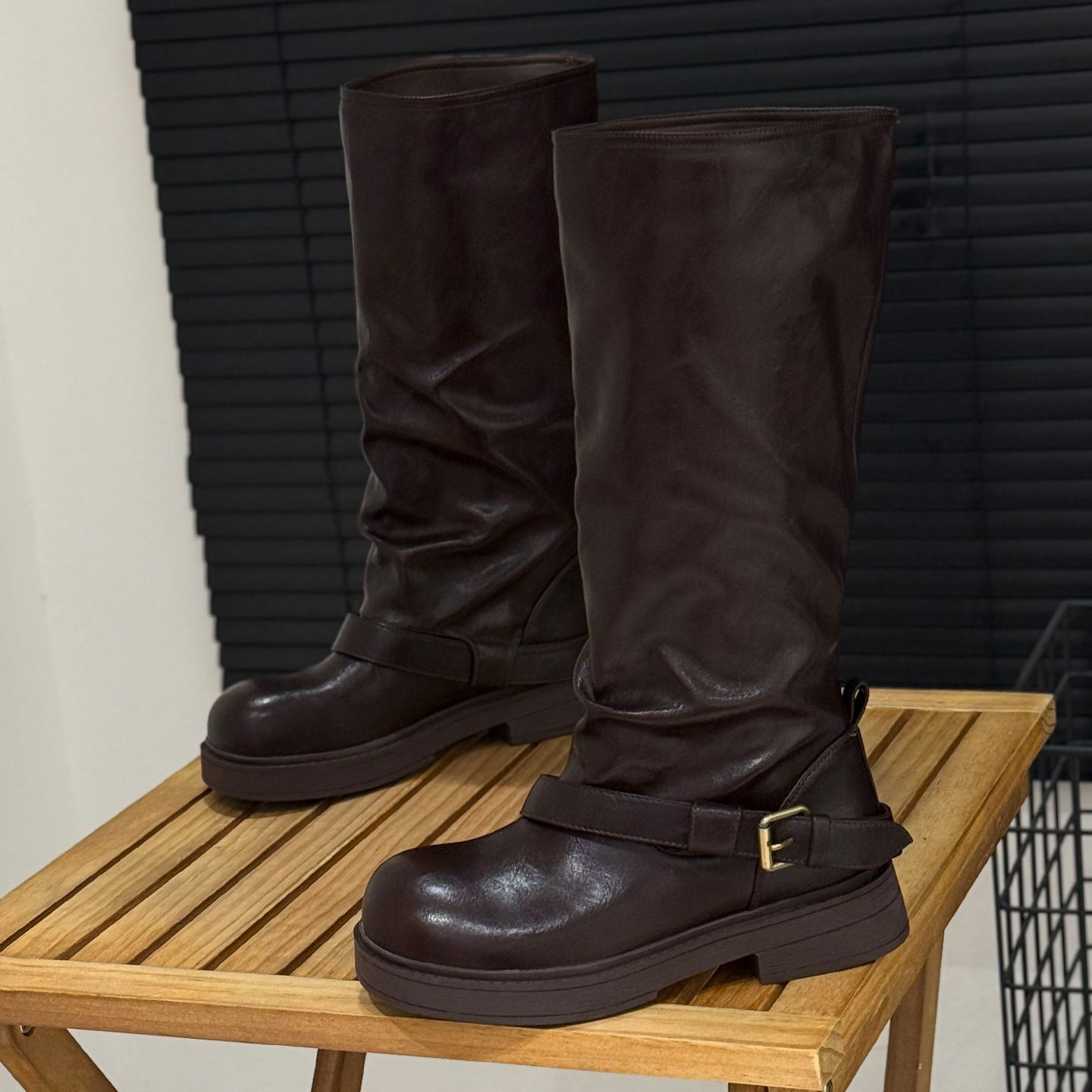 不过膝长筒靴女2025秋冬新款高筒骑士靴时尚裤管靴套筒机车长靴子